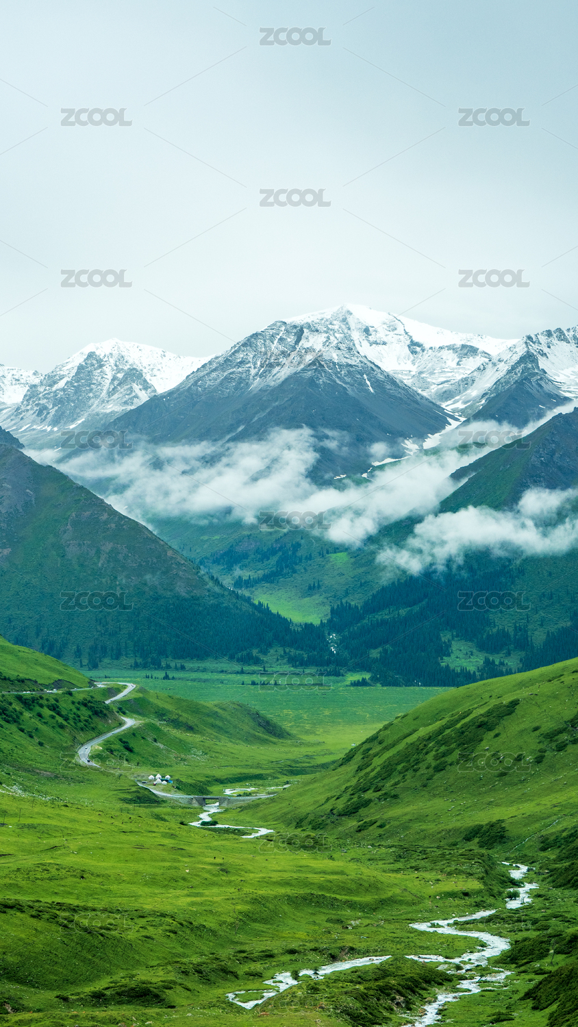中国新疆那拉提大草原雪莲谷雪山风光