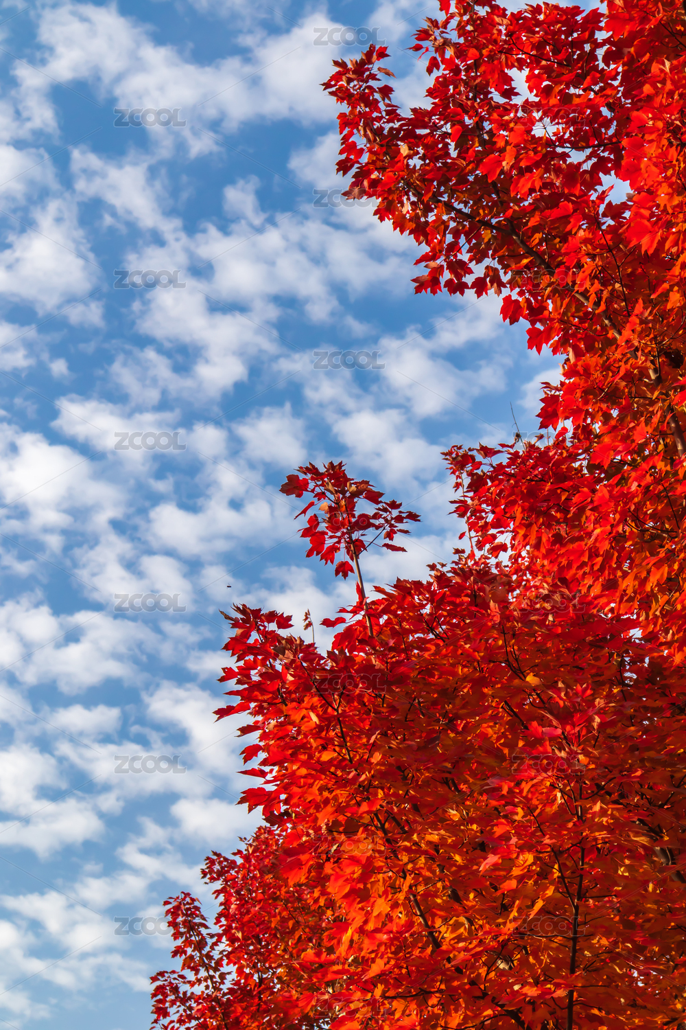 秋天红叶霜降枫树枫叶林,自然风景天空树林