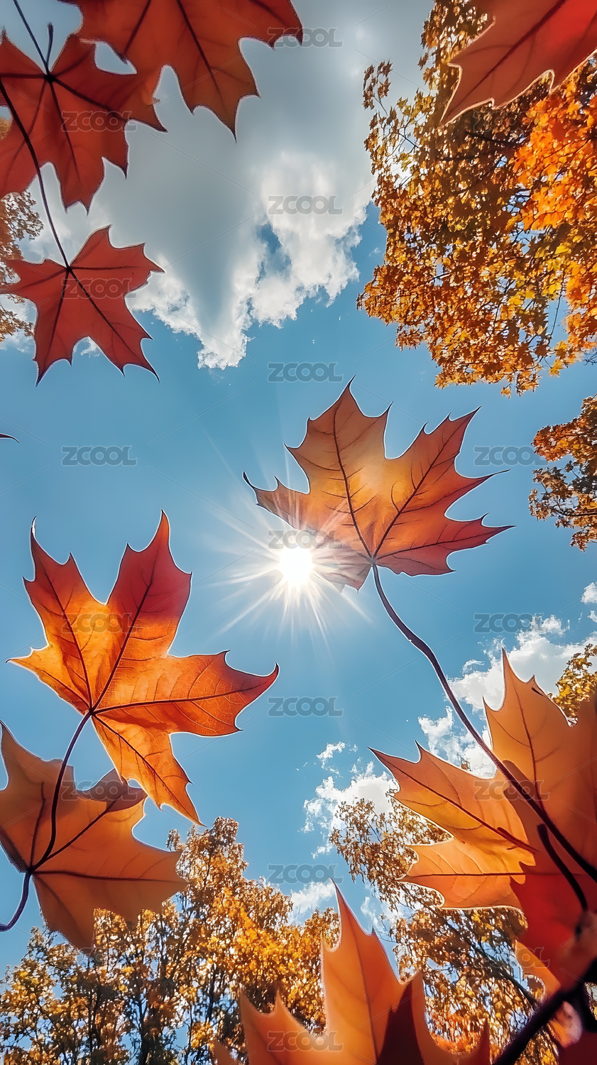 蓝天,仰望,视角,秋季,树叶,天空,色彩,枫叶,秋日,美丽