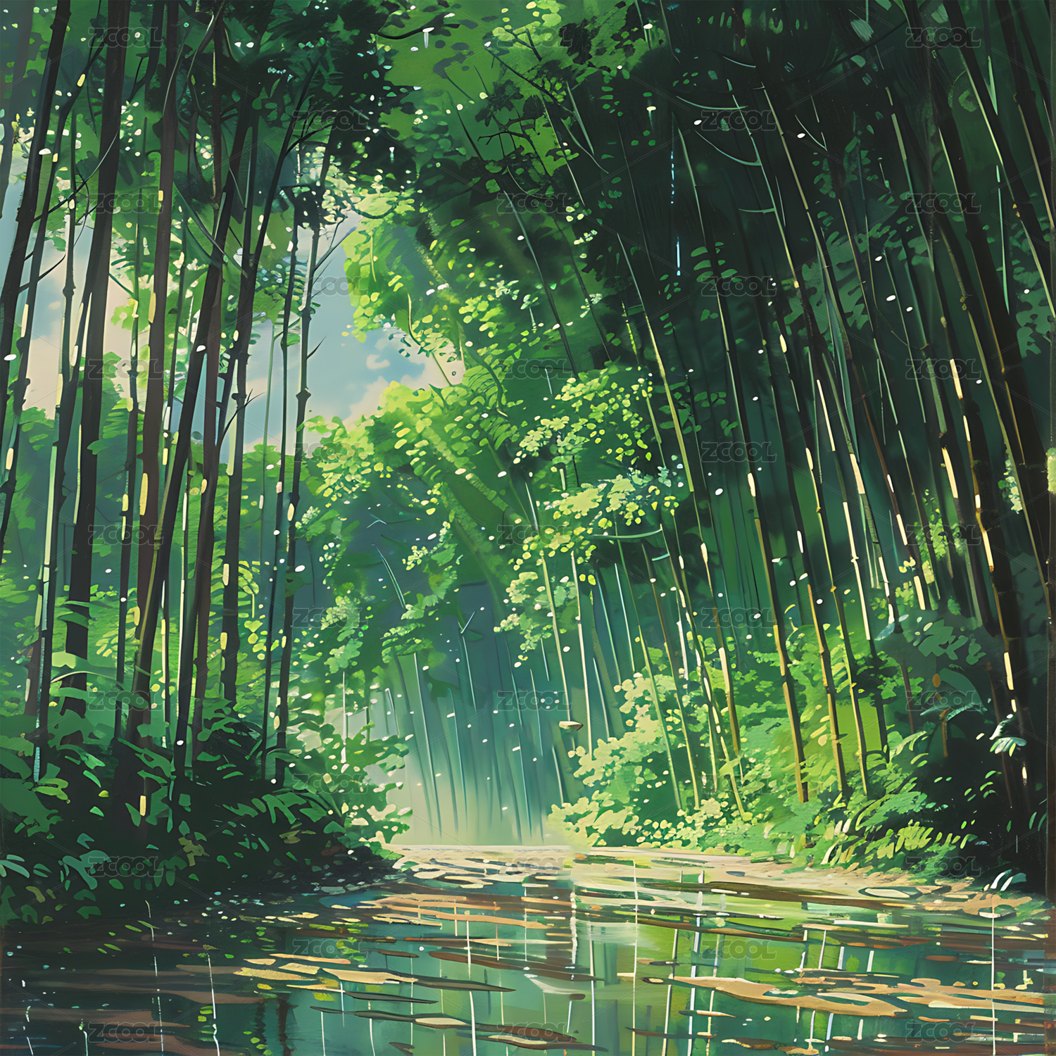 竹林,叶子,绿色,森林,竹子,自然美,清新,户外,夏天