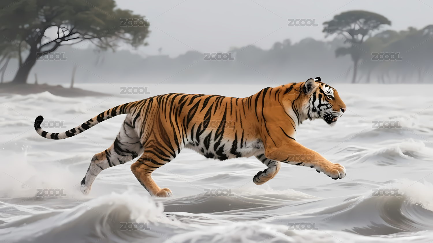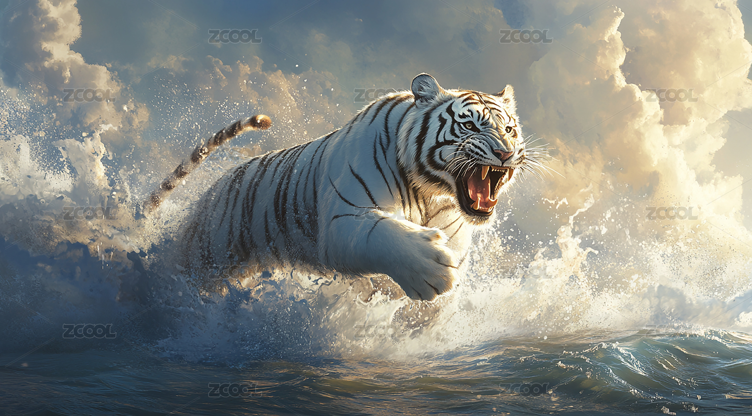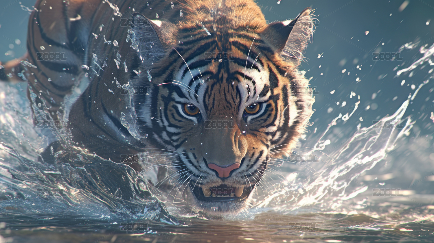 溪流,奔跑,而来,老虎,野生,猛兽,虎,大老虎,哺乳,猫科