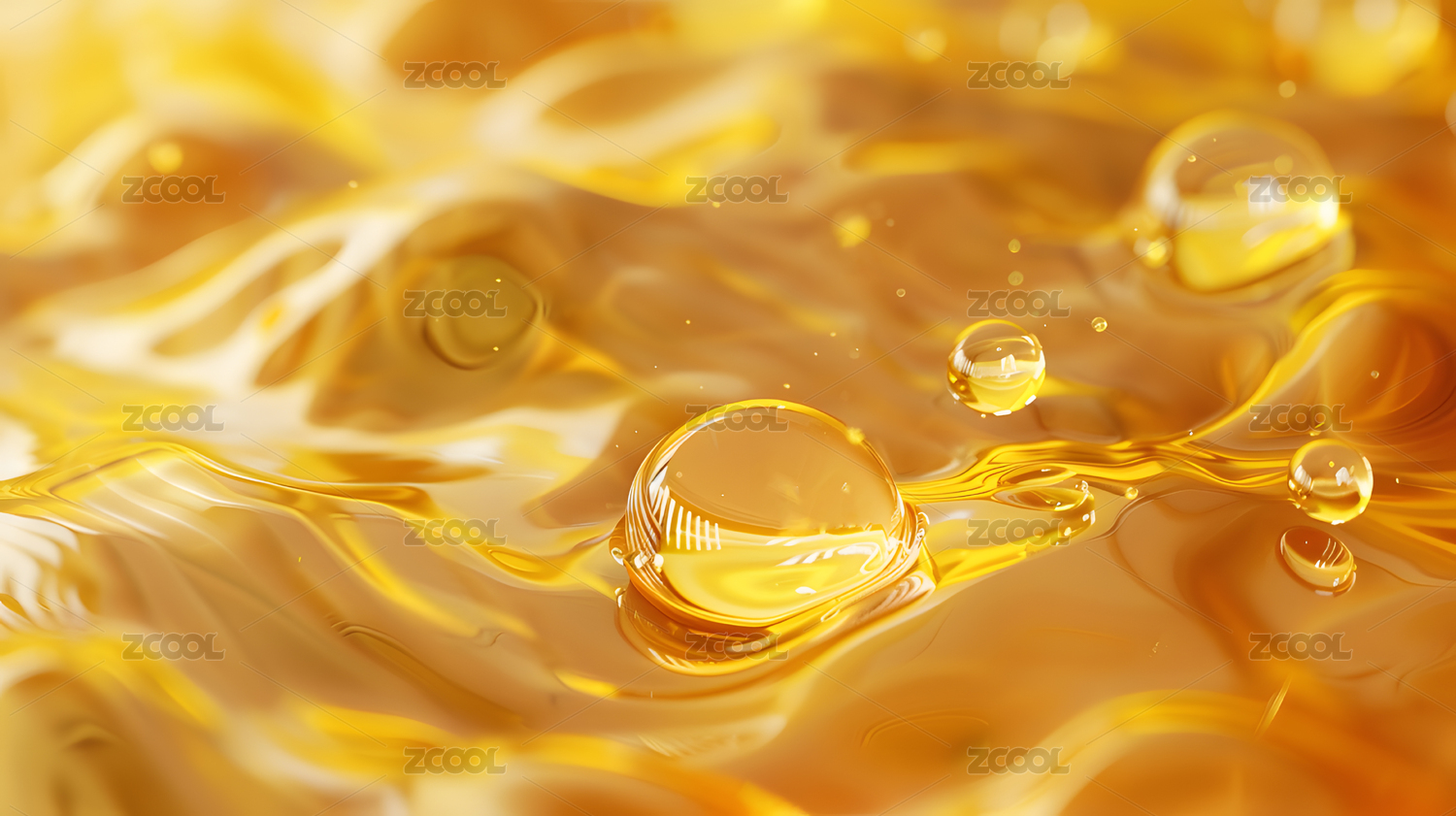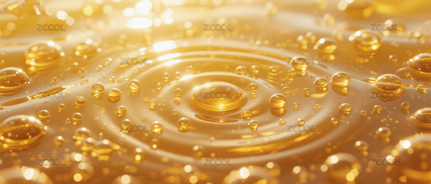 金色液体旋转悬浮着水滴