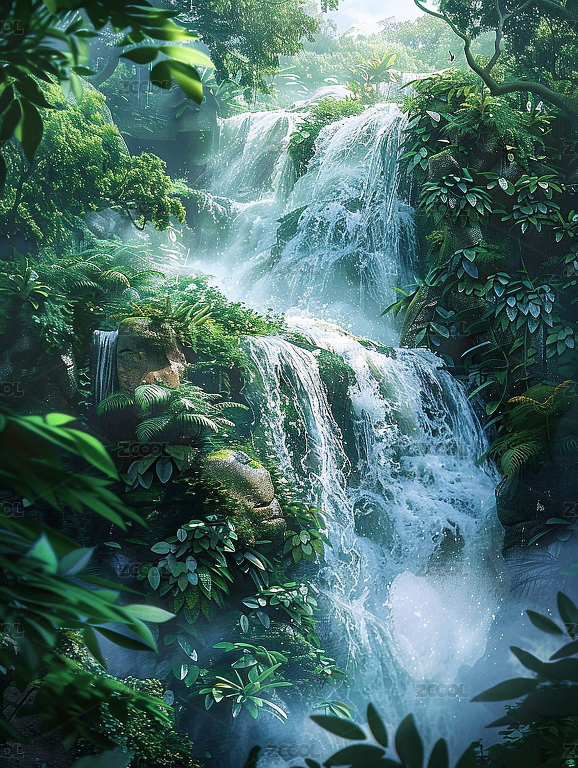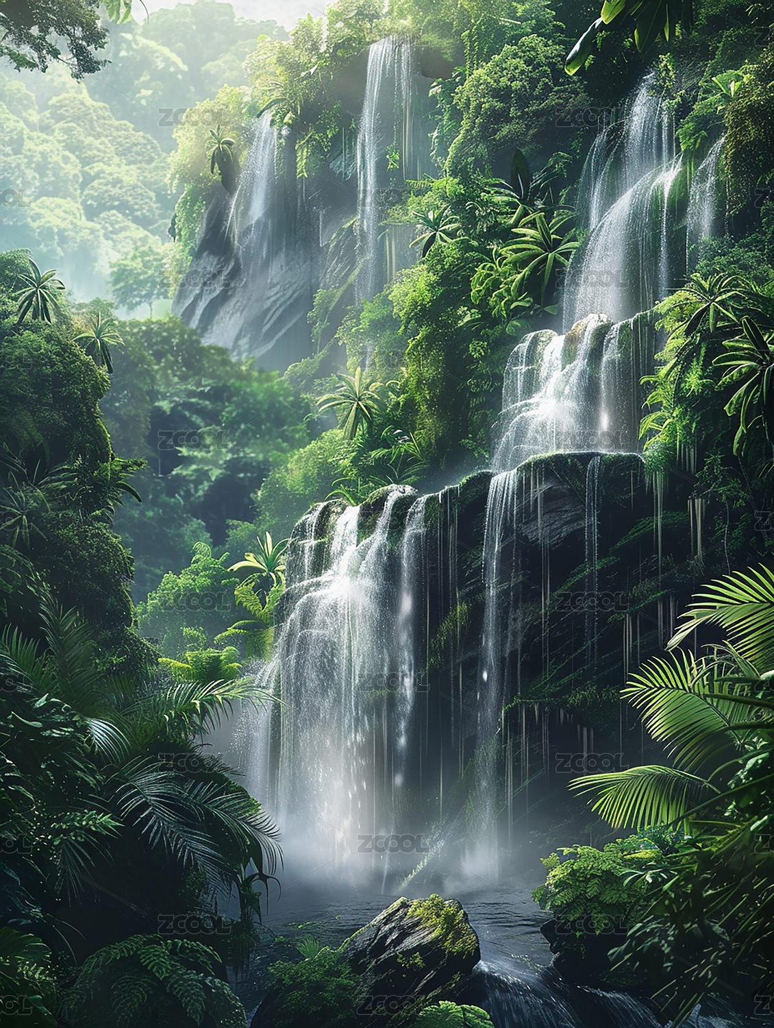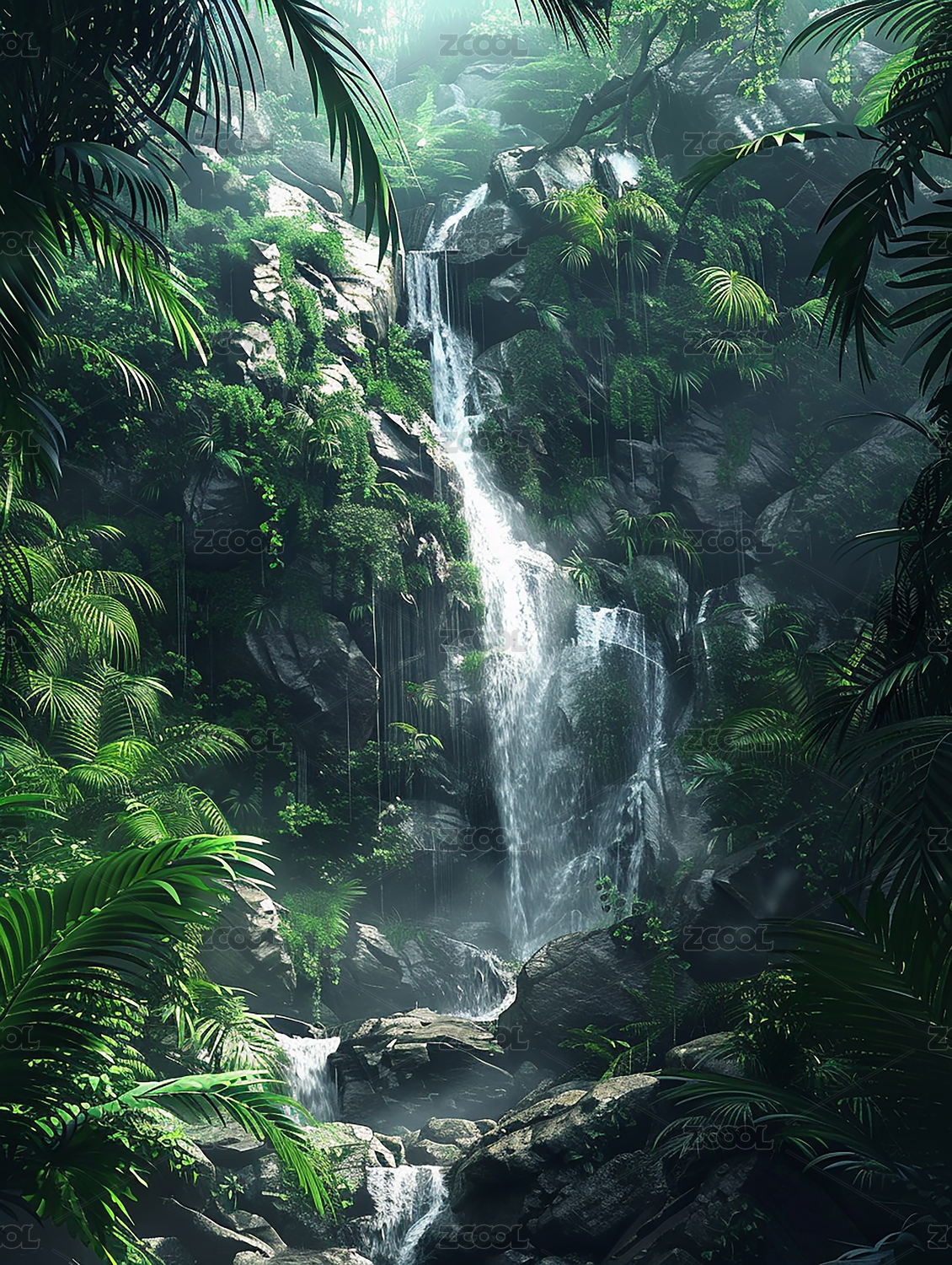 丛林瀑布景观插图