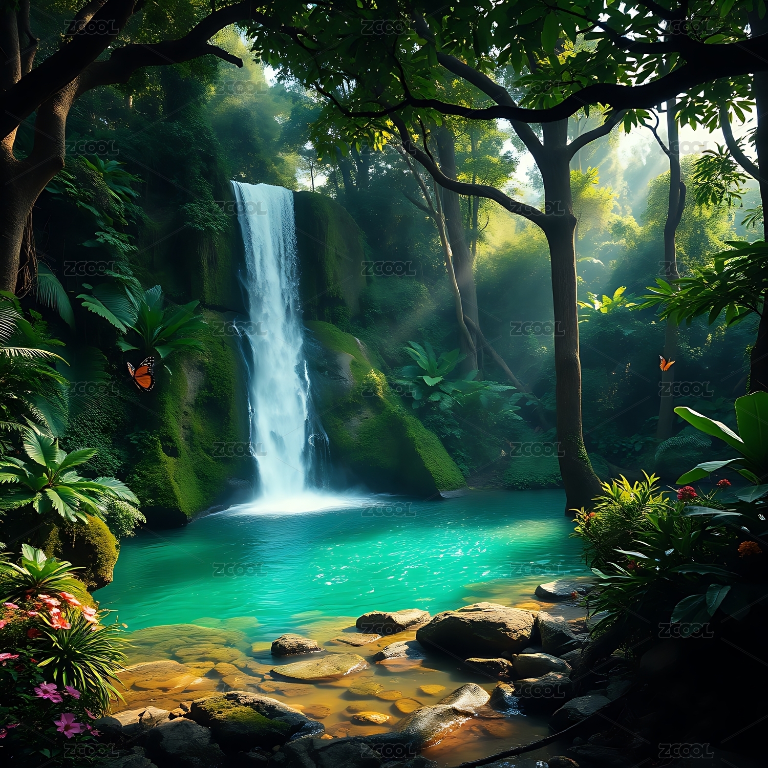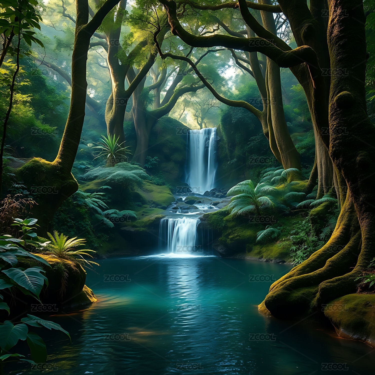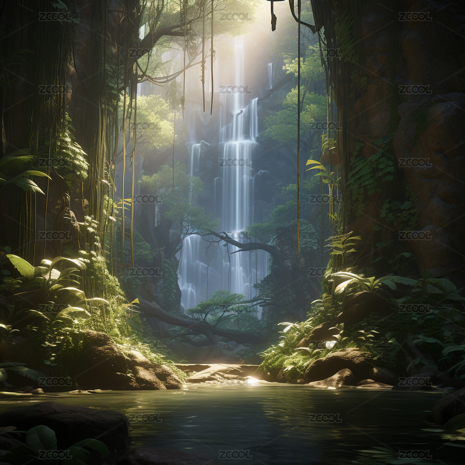 丛林瀑布景观插图