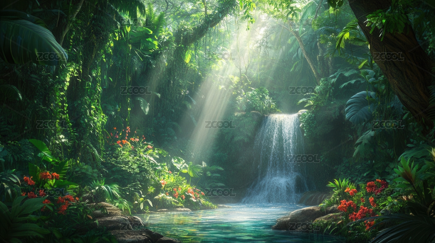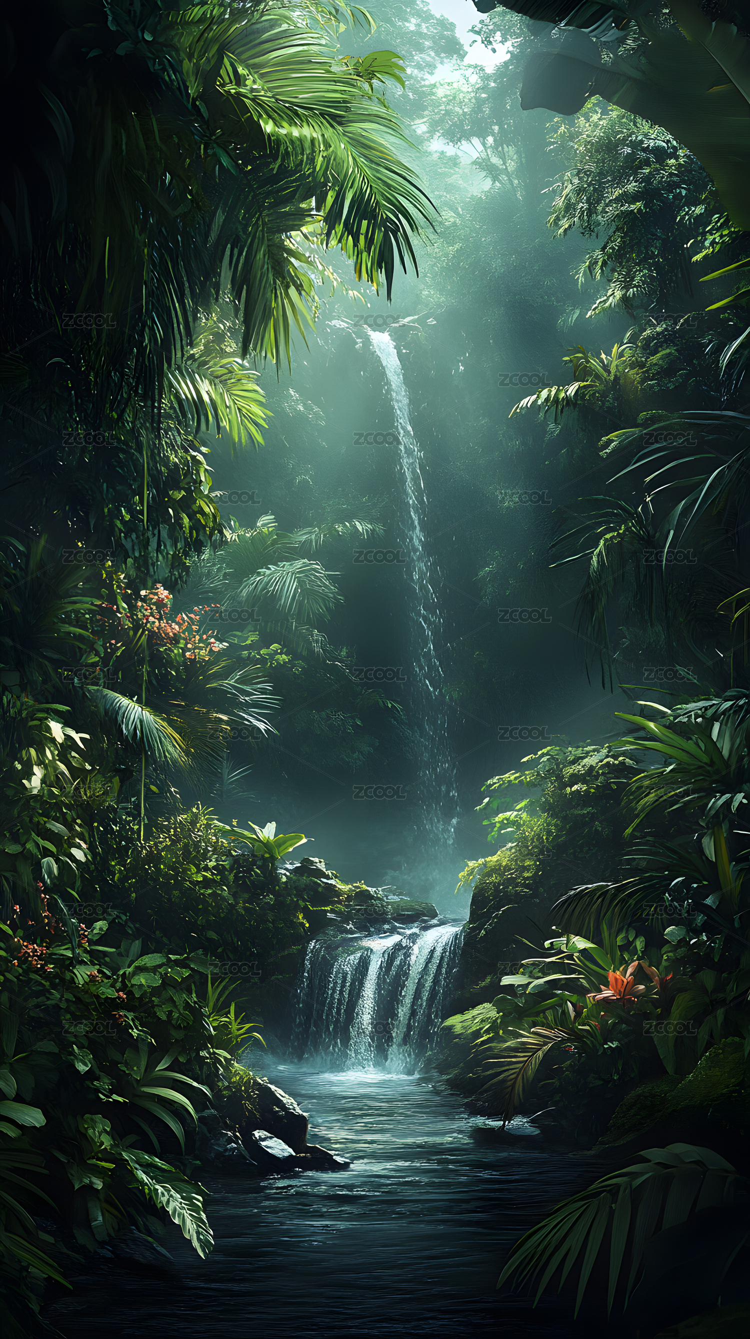 雨林深处瀑布溪流