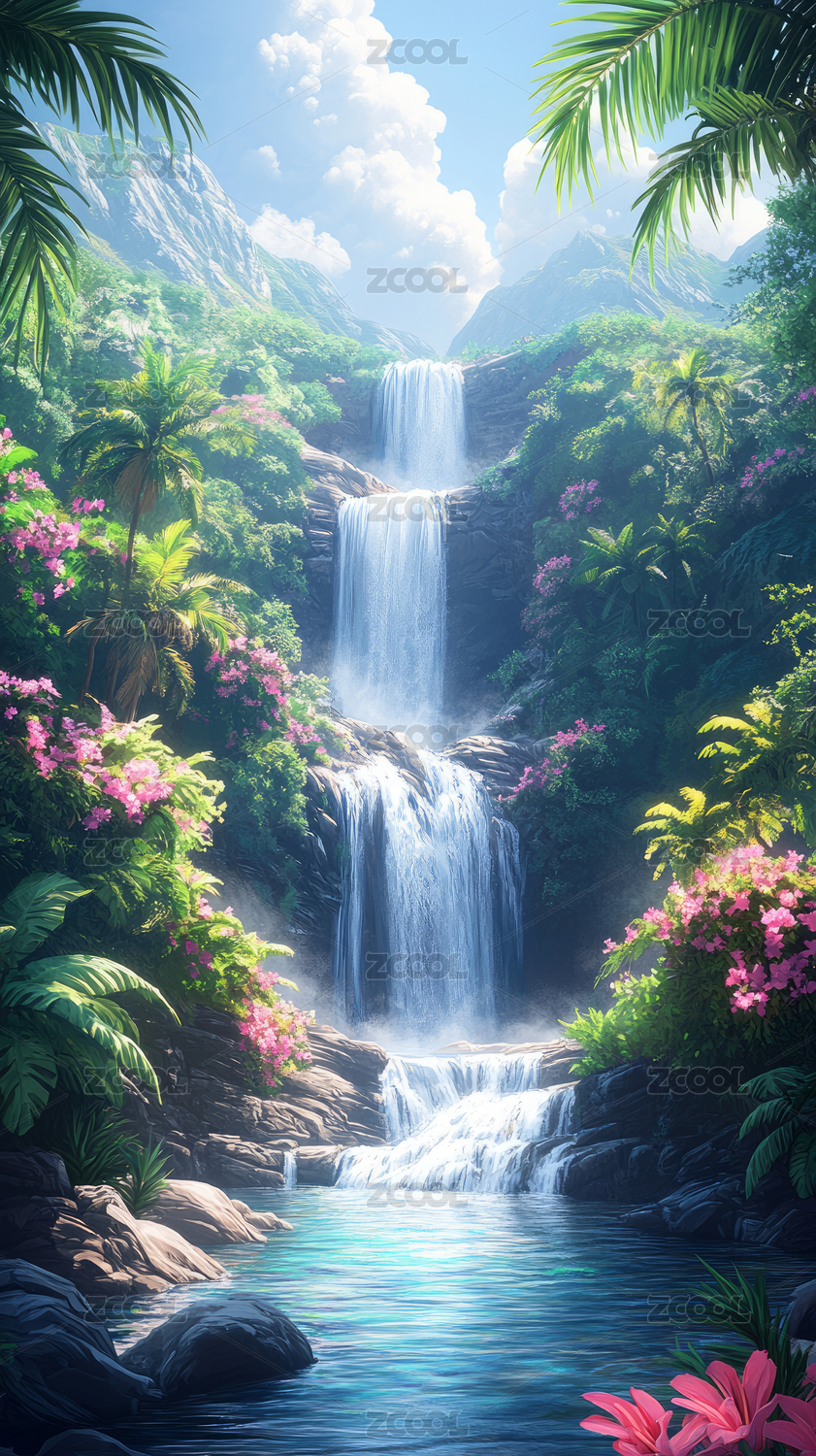 热带雨林瀑布景观图