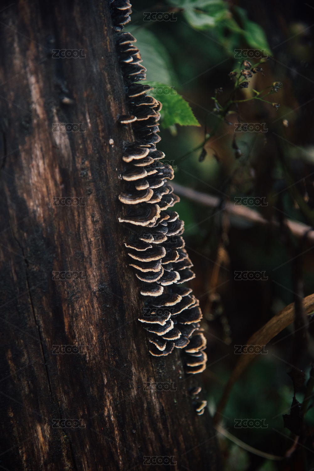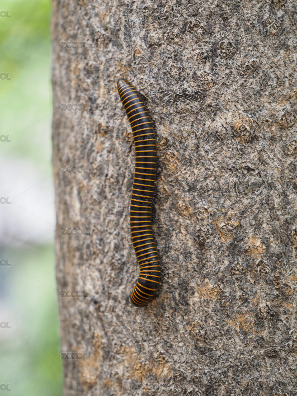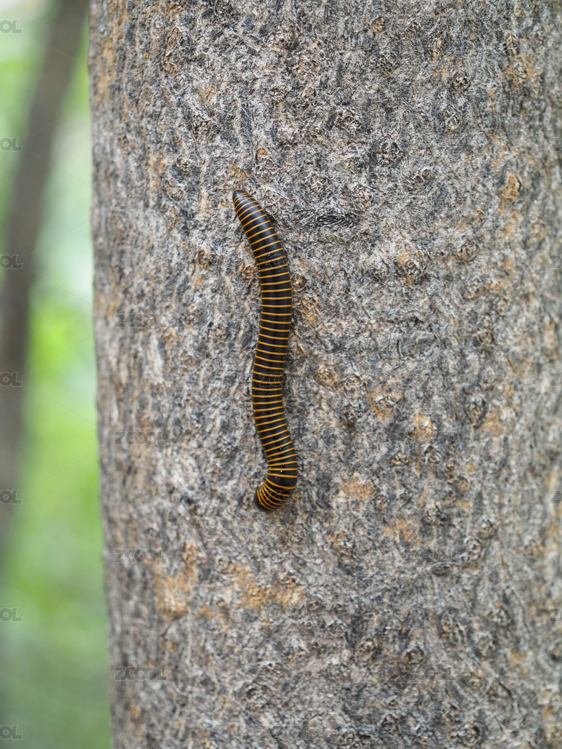 树干上的红色千足虫