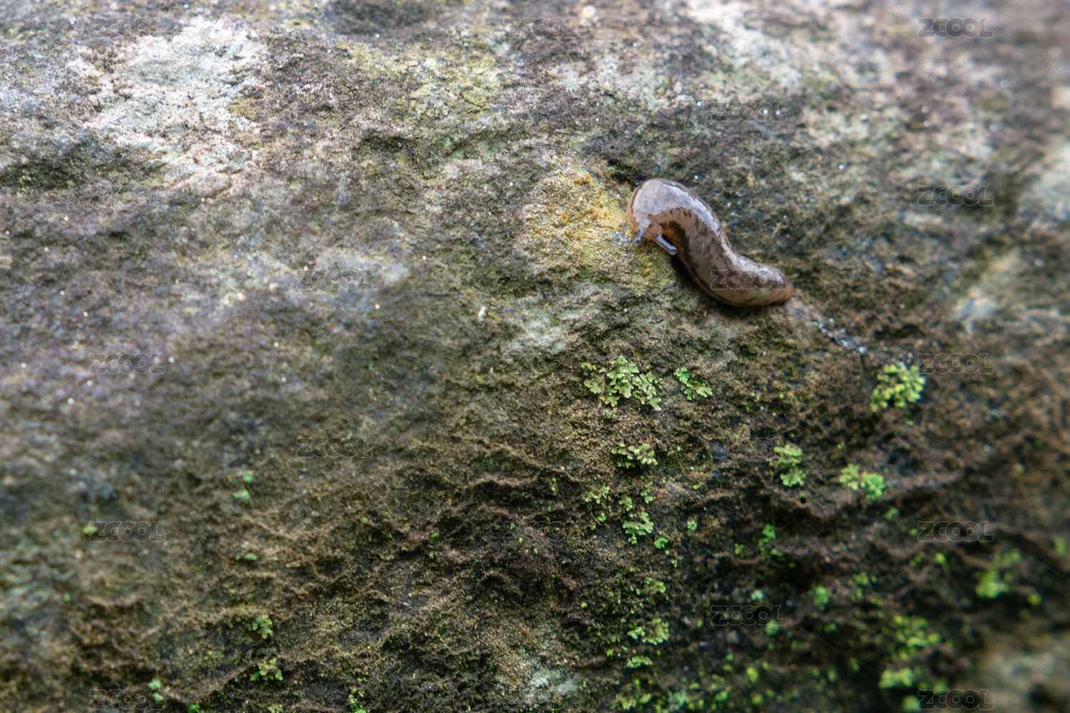 岩石上虫子特写镜头 软体动物门肺螺亚纲柄