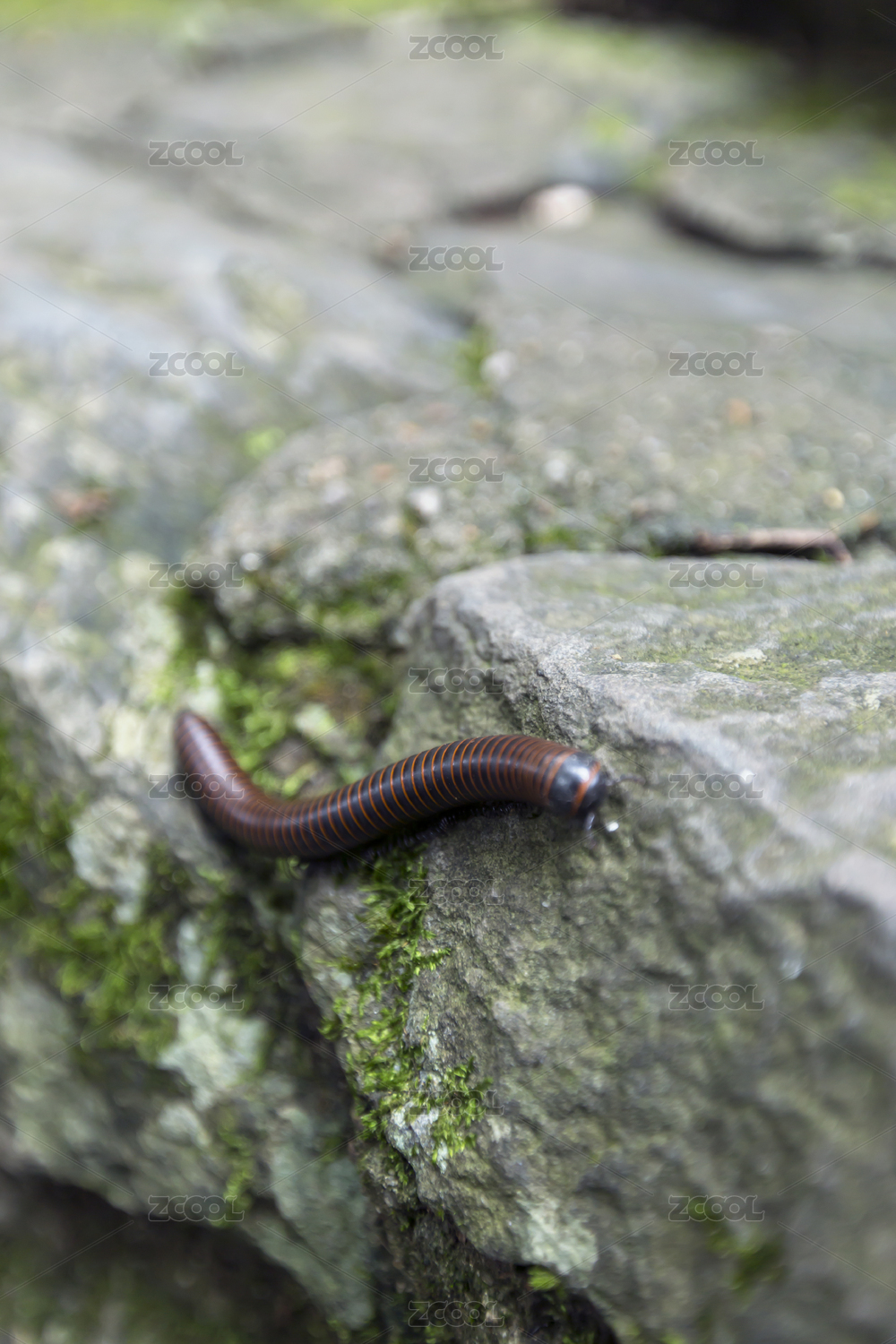 一条正在青石板上爬行的千足虫