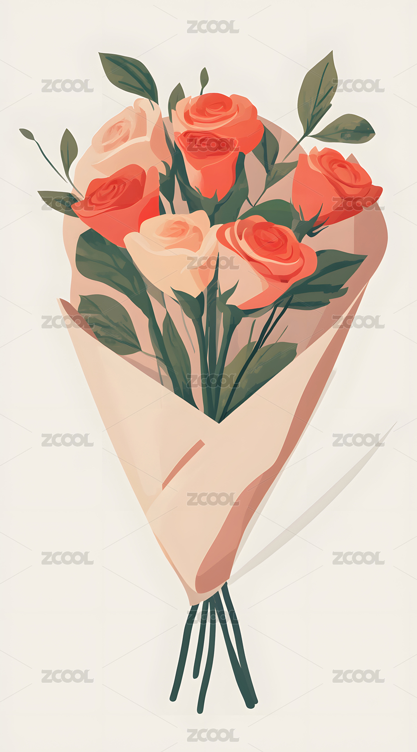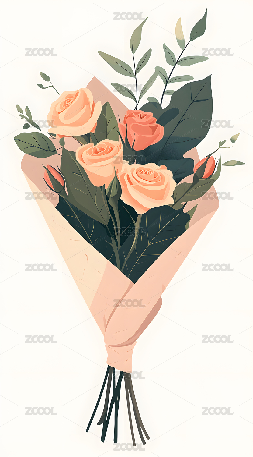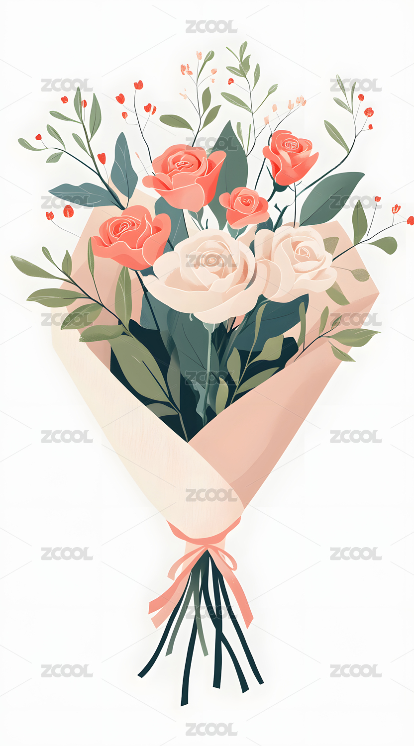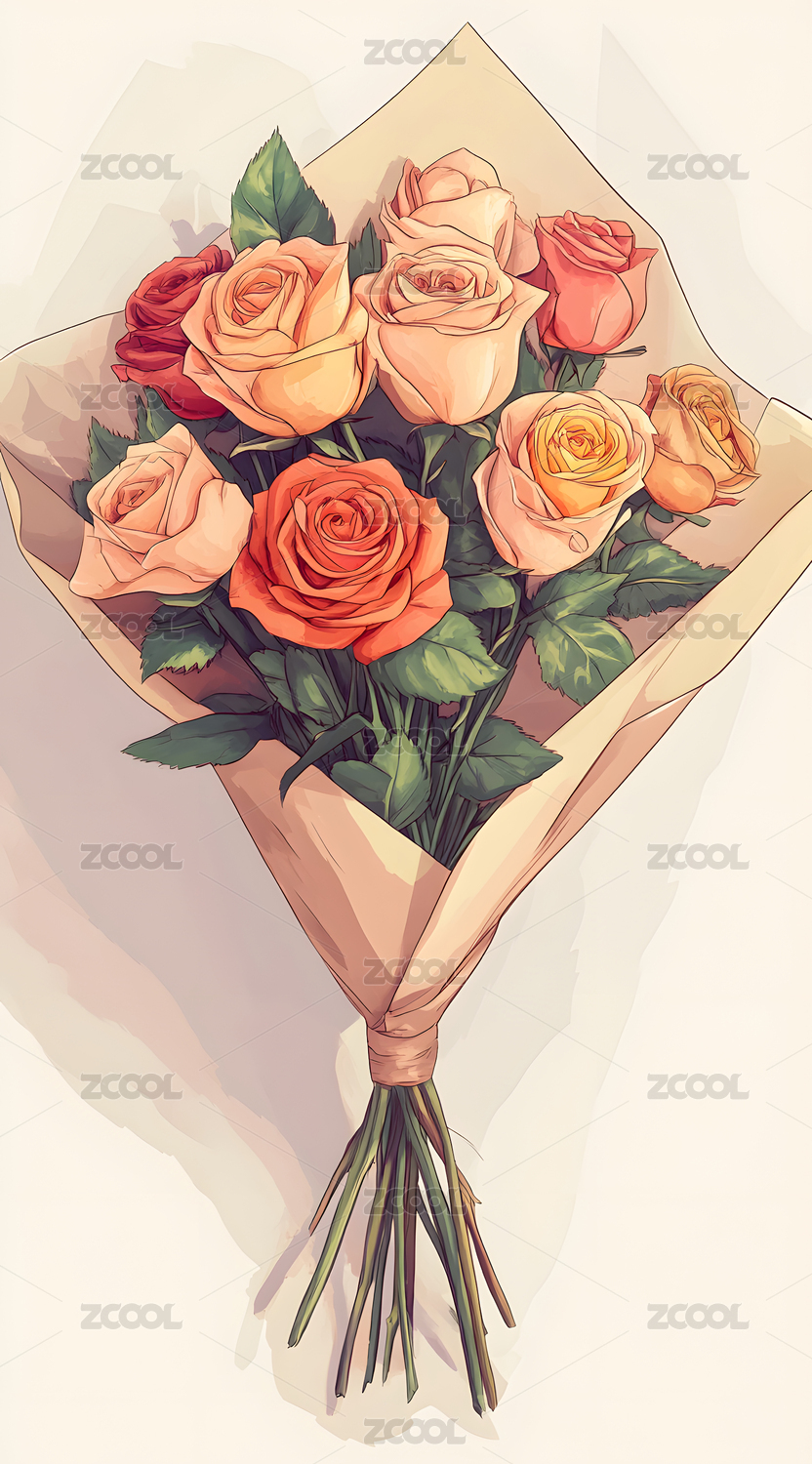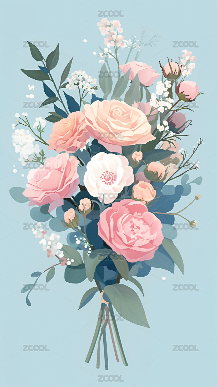 水彩,花束,鲜花,玫瑰,雏菊,康乃馨,黄色,粉色,蓝色,紫色