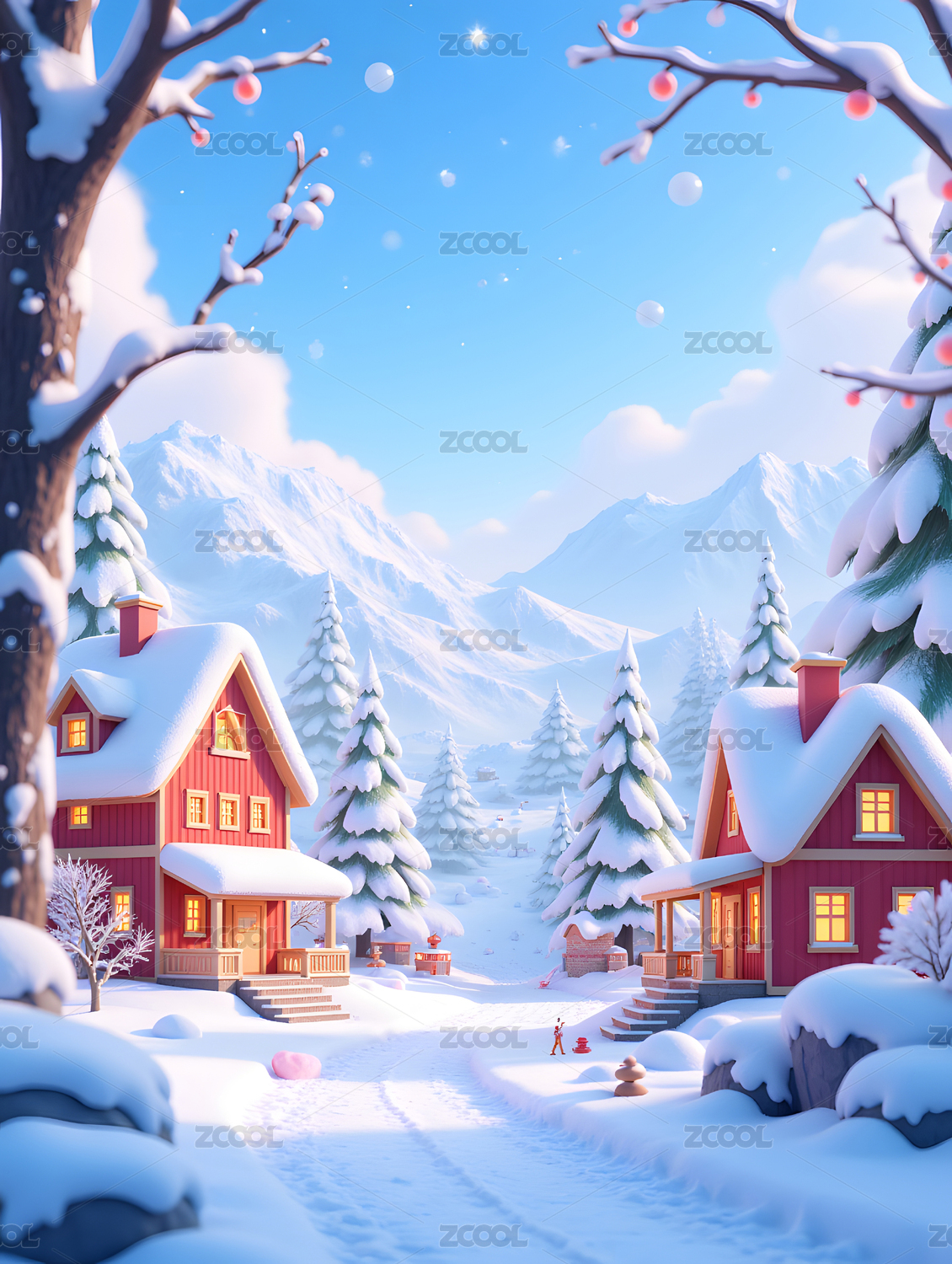 雪,温暖,简约,自然,宁静,小屋,梦幻,静谧,唯美,风景