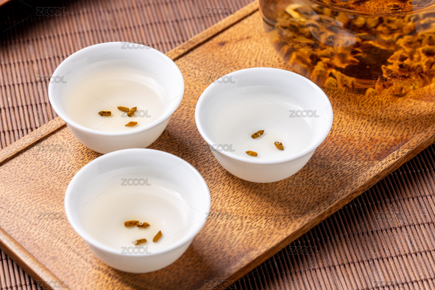 暗色木板上的金丝皇菊茶