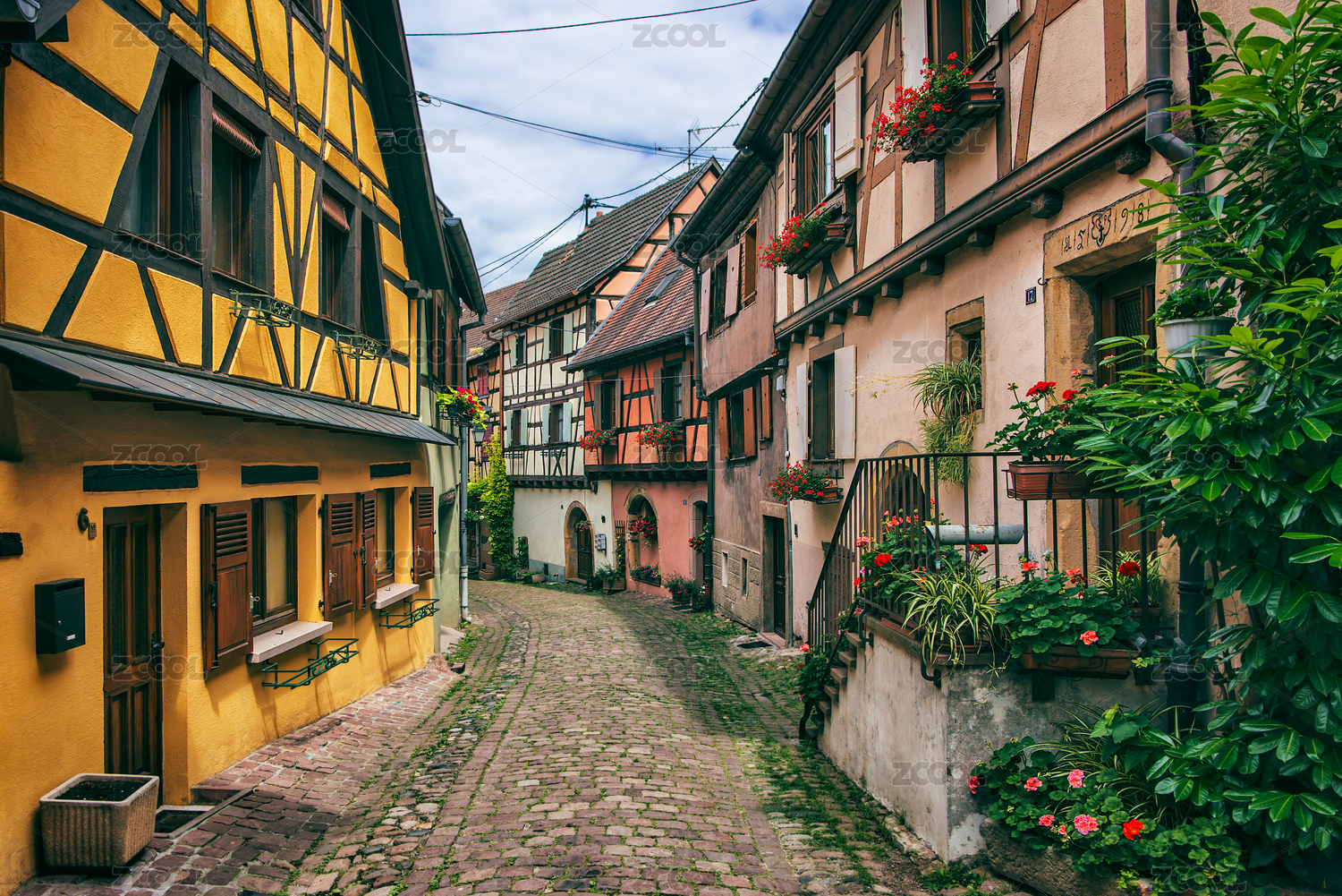 欧洲法国阿尔萨斯鲜花小镇埃吉桑街景