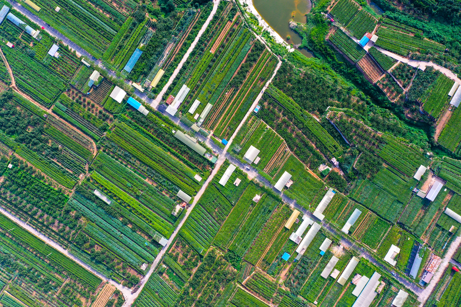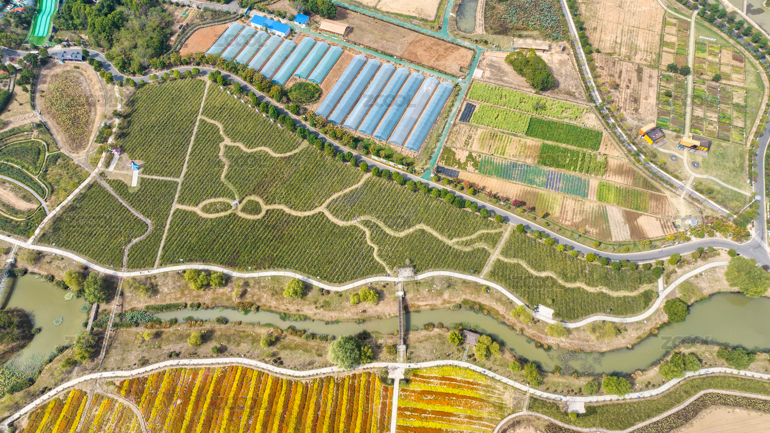 航拍中国安徽省宣城市现代农田夏季田园风光