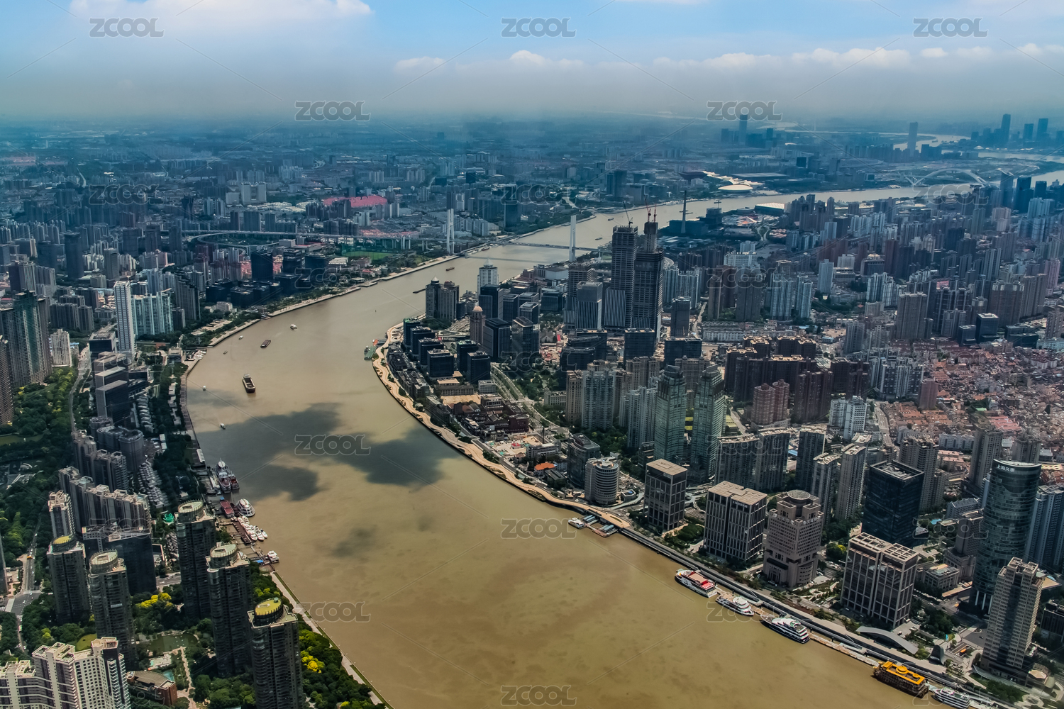 俯瞰中国上海徐浦大桥和黄浦江两岸城市景观