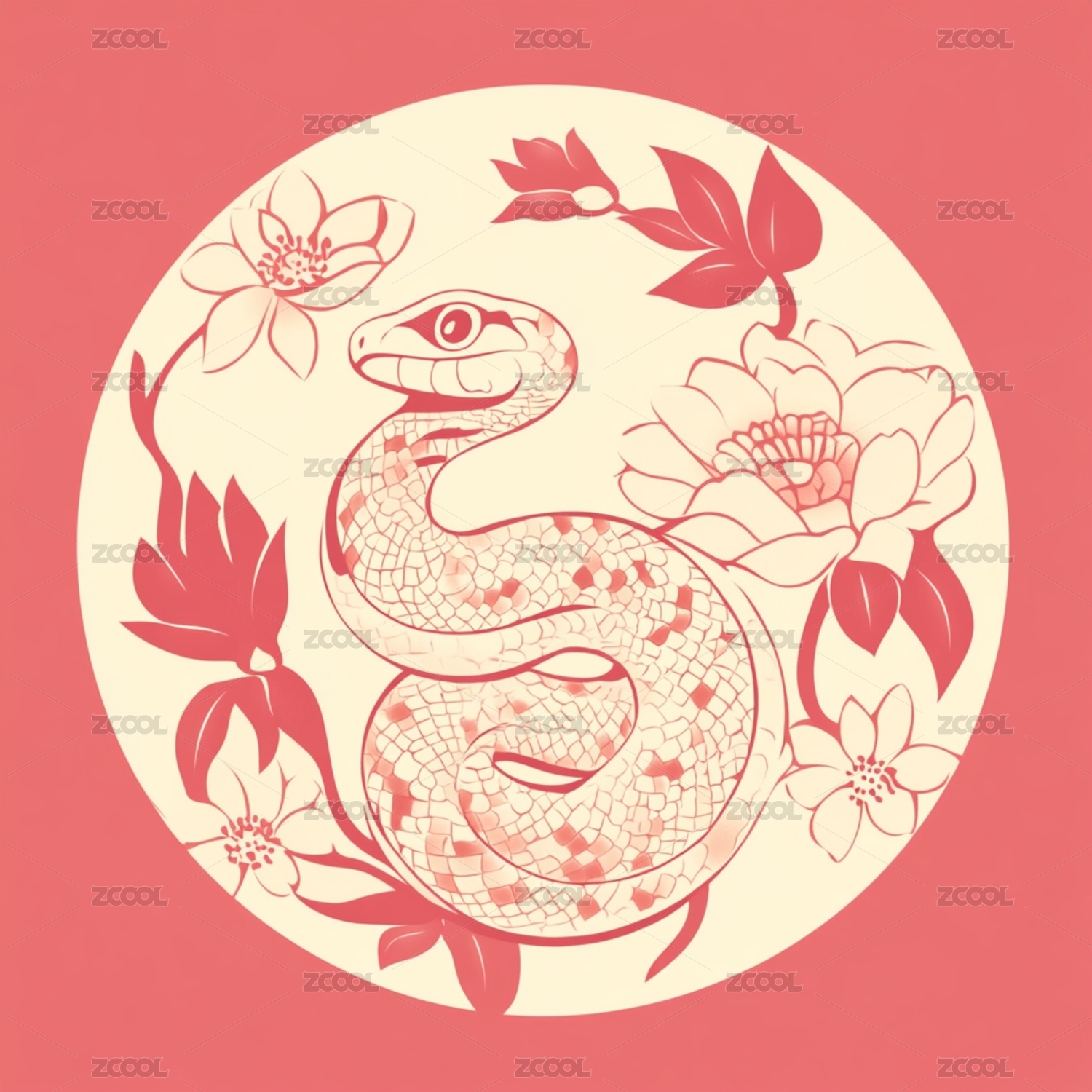 蛇年主题插画艺术剪纸图案logo徽章标志