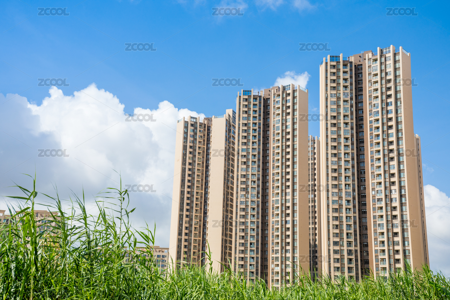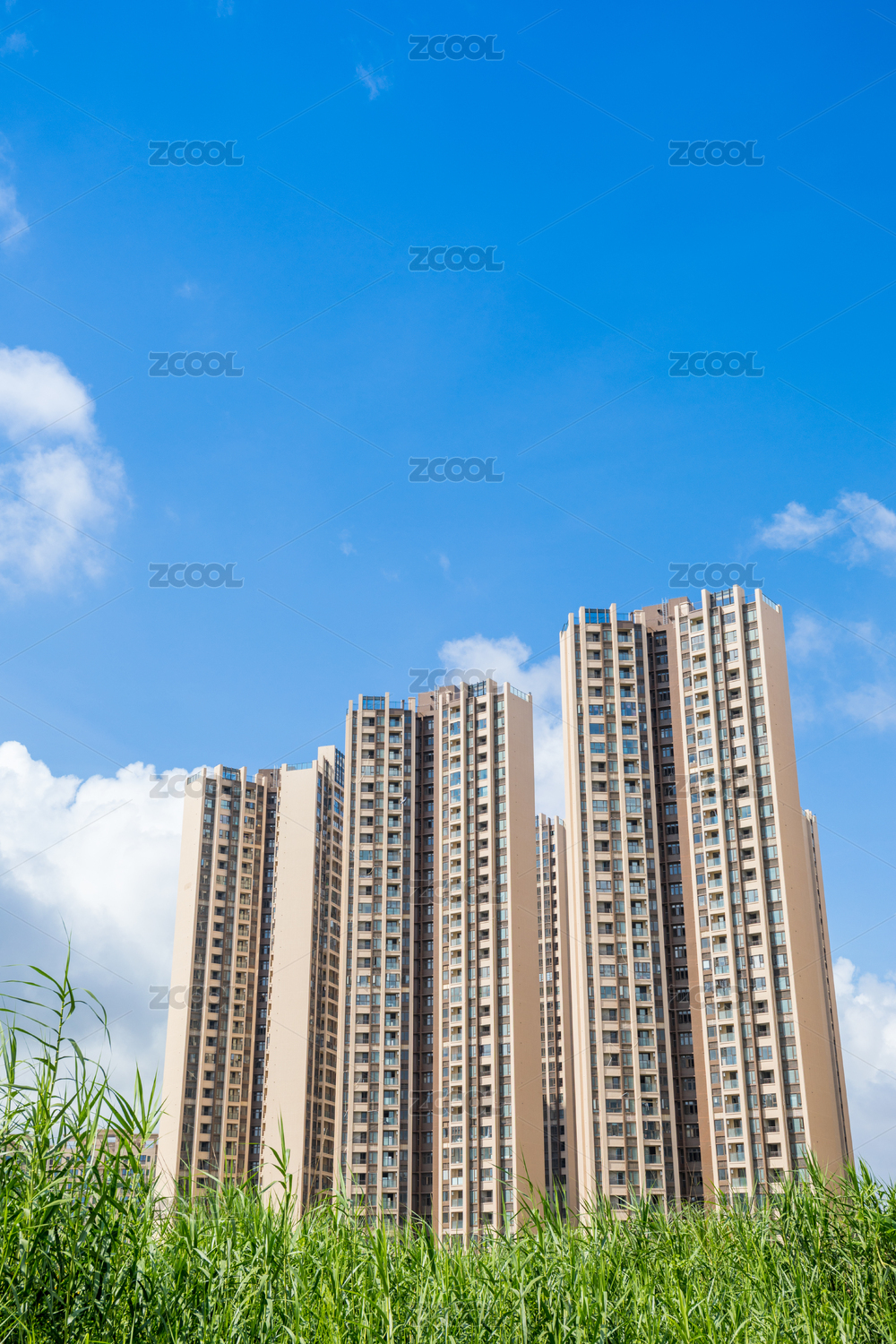 蓝天白云下的房地产楼盘 中国广东省珠海市金湾区航空新城