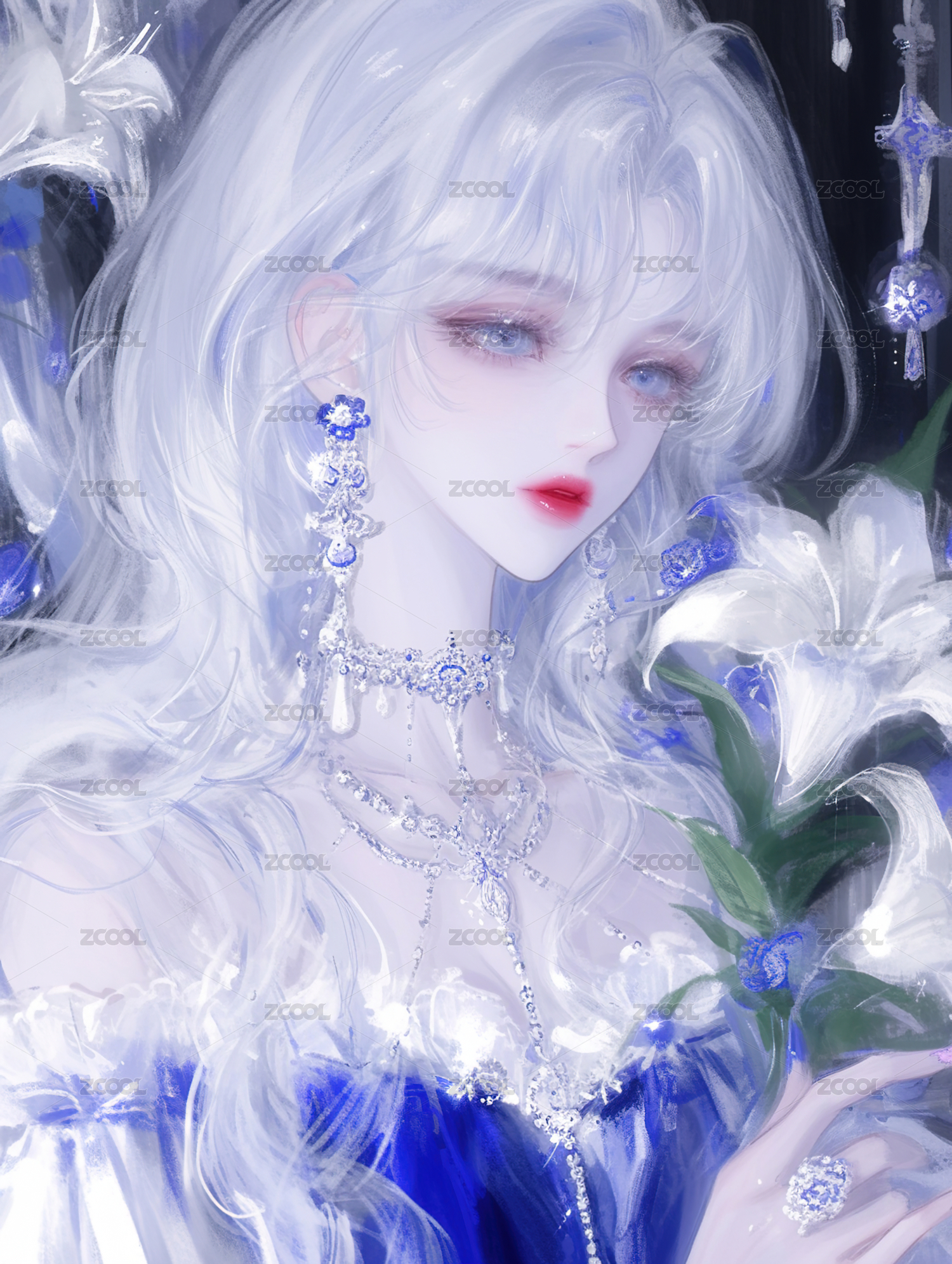 水彩风鲜花礼服长发少女