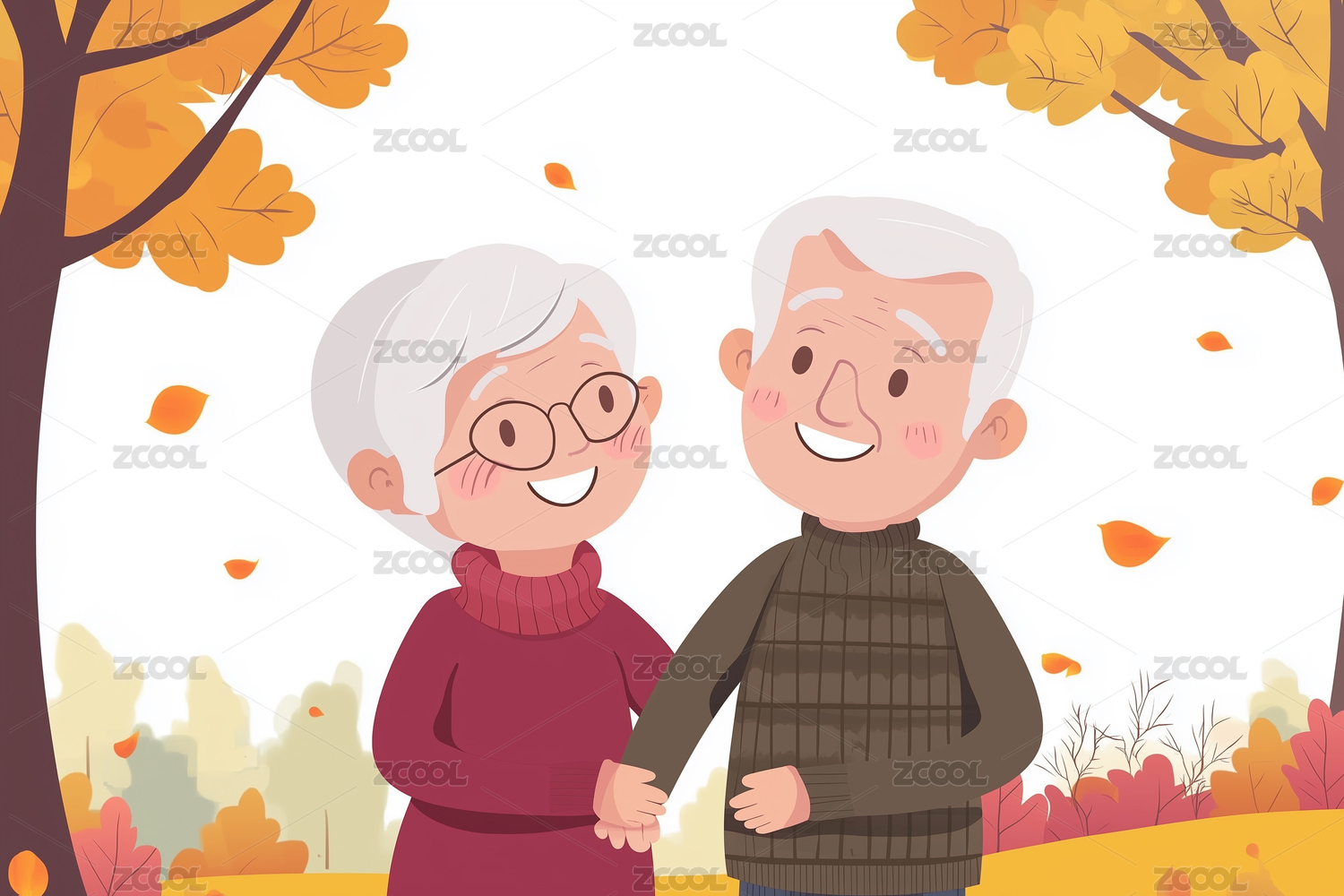 AIGC202406,扁平风格,老爷爷老奶奶,老爷爷,老奶奶,在公园,运动,打拳,跳广场舞
