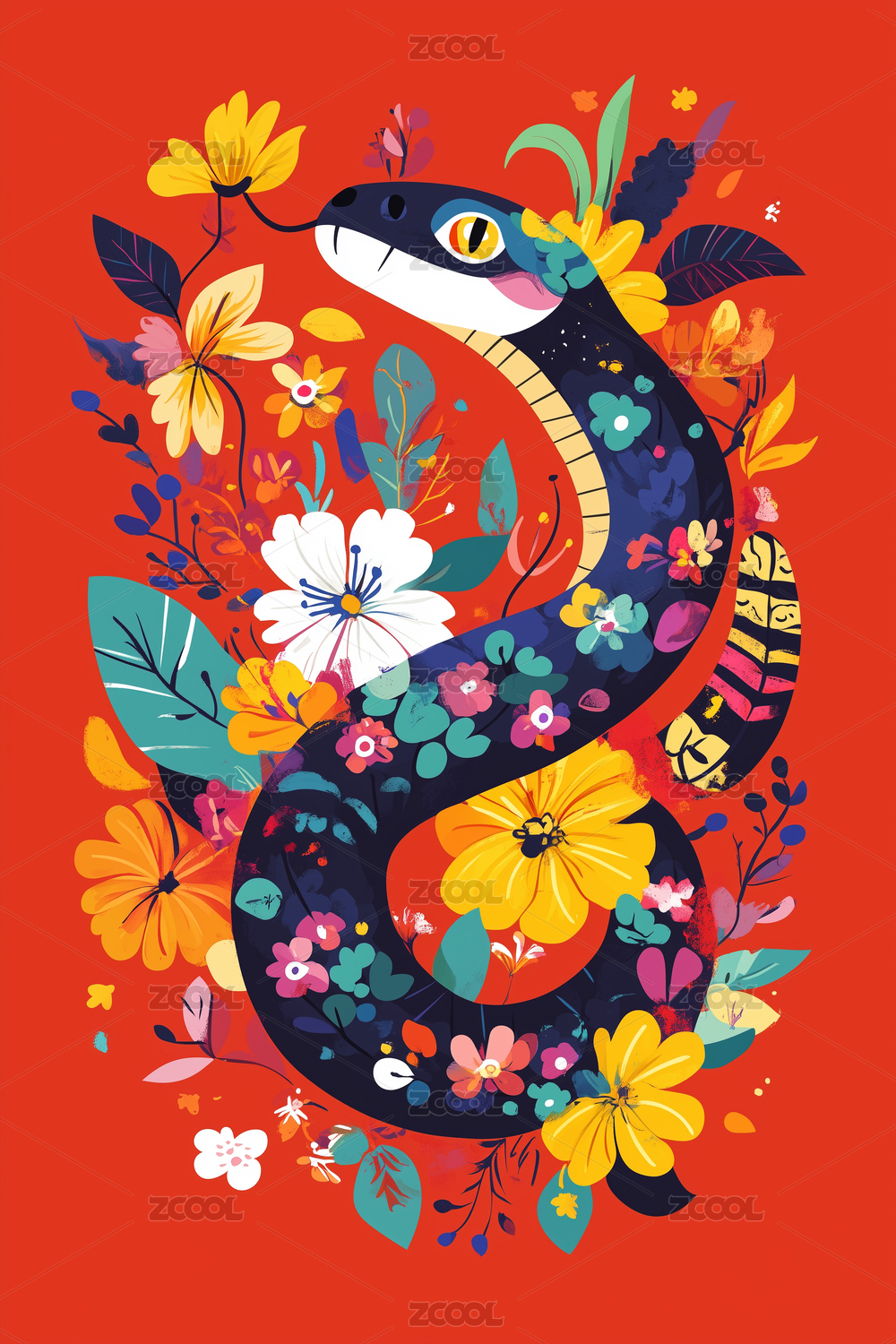 立体蛇,蛇头,2025,花丛,花朵,植物,多彩,绚丽,炫彩,鲜艳