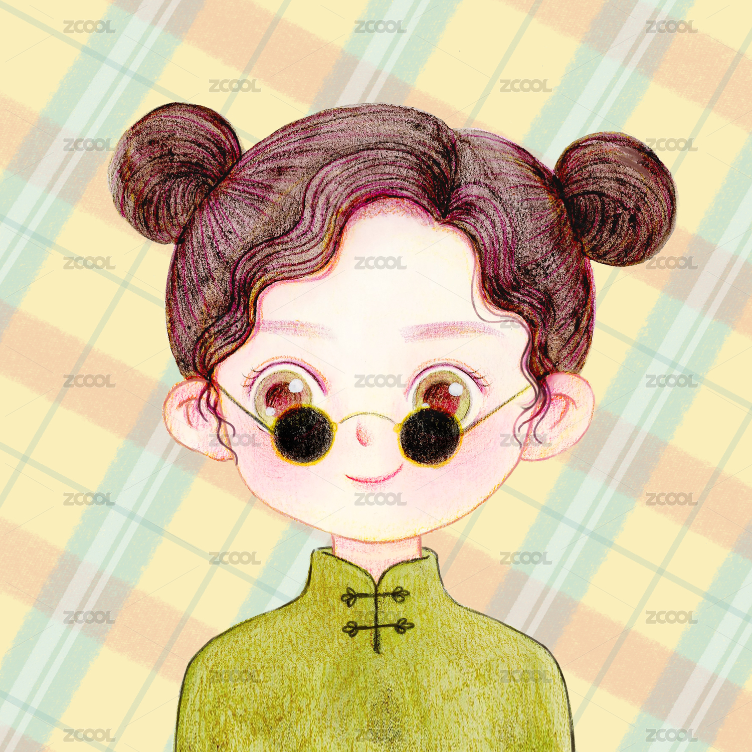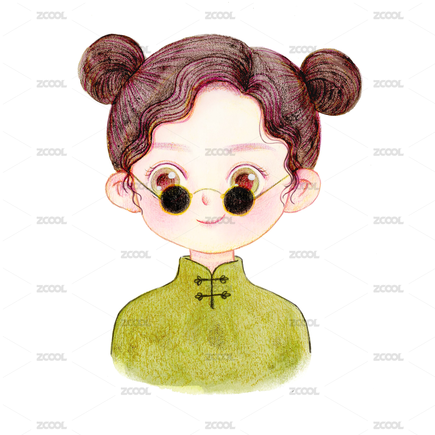 温暖手绘-带墨镜的中国风大眼睛女孩