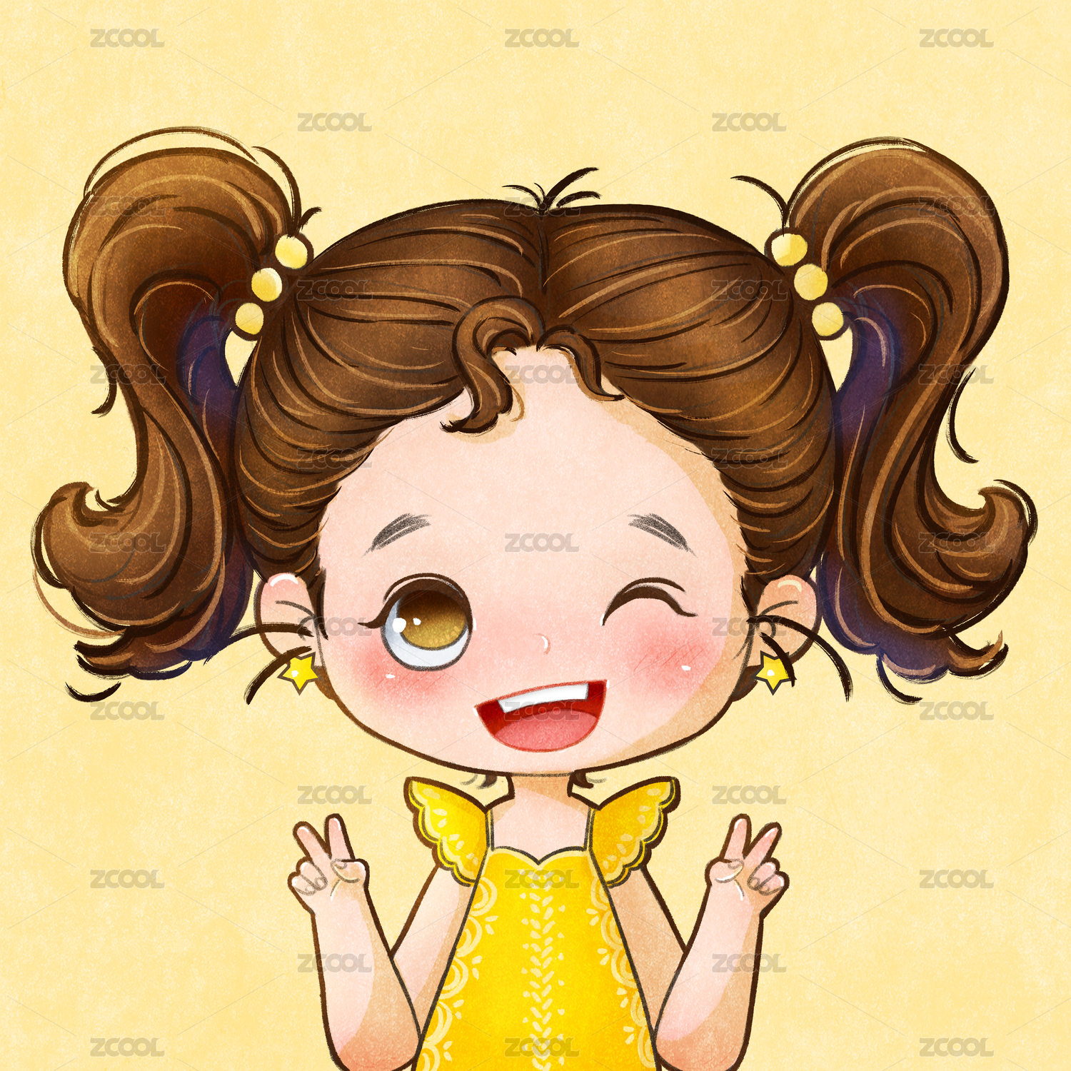 眼睛,插图,微笑,卷发,小姑娘,美女,可爱,萌,大眼睛,调皮
