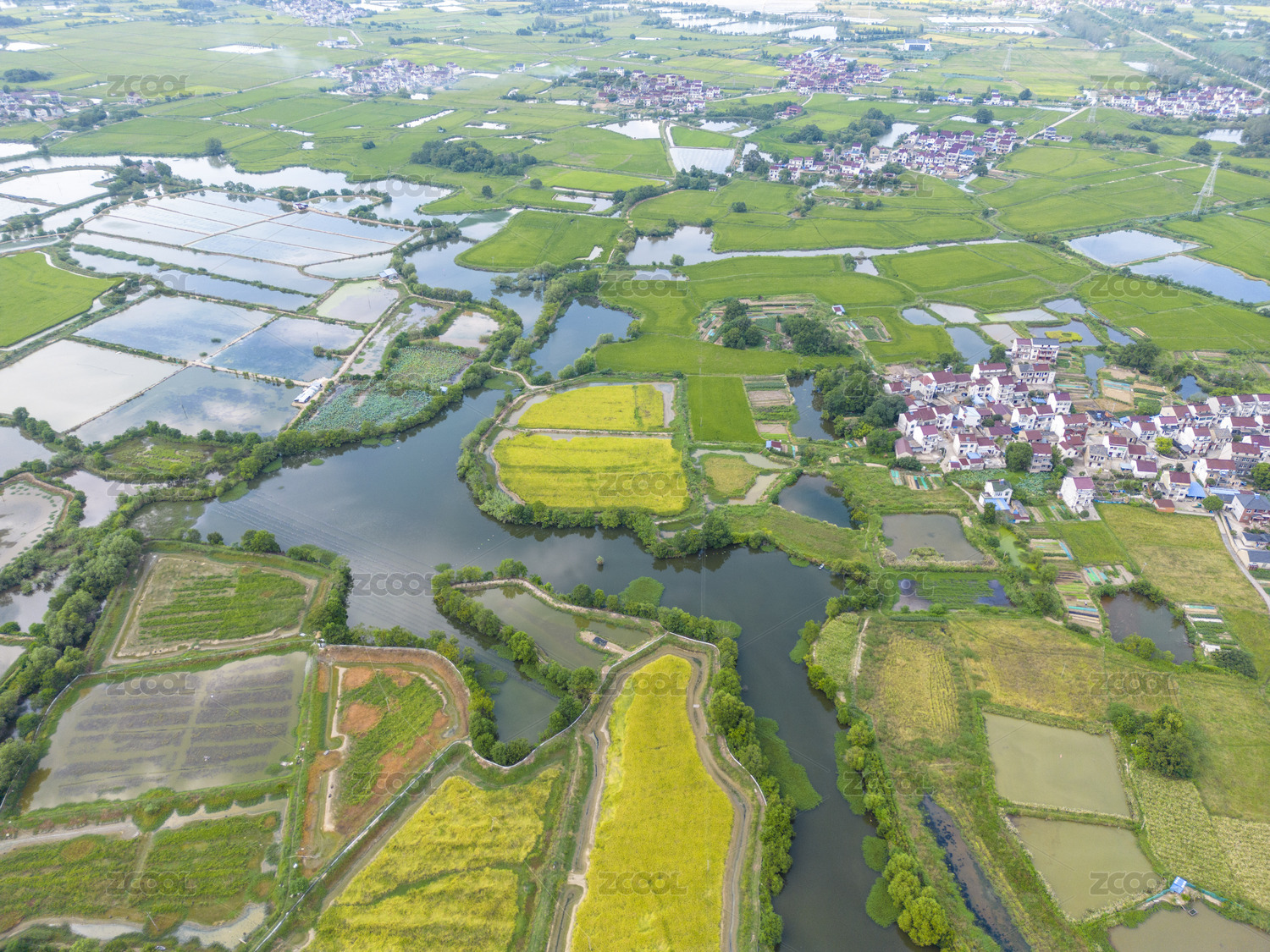 航拍中国安徽省宣城市郎溪县西郊初秋田园风