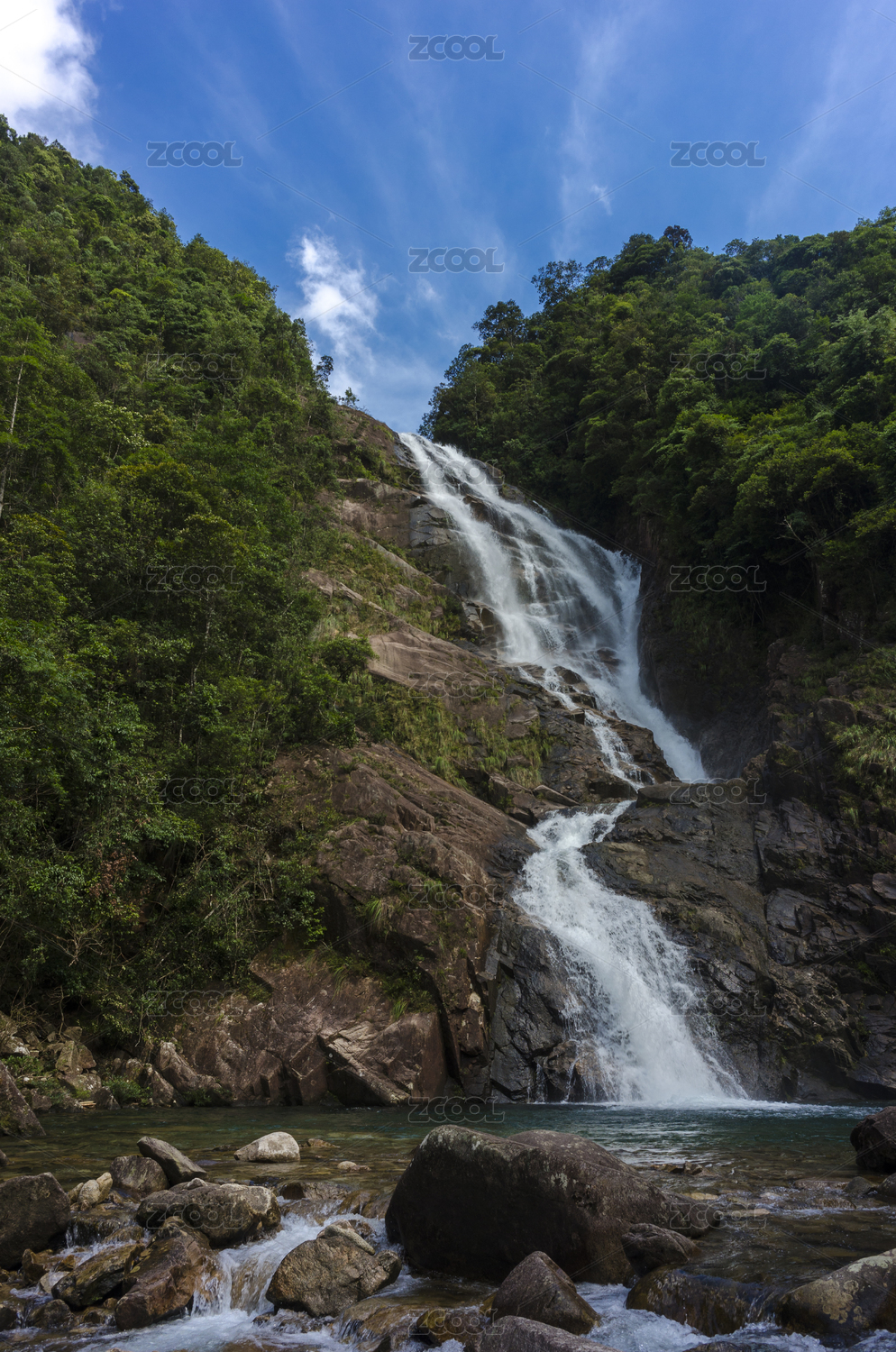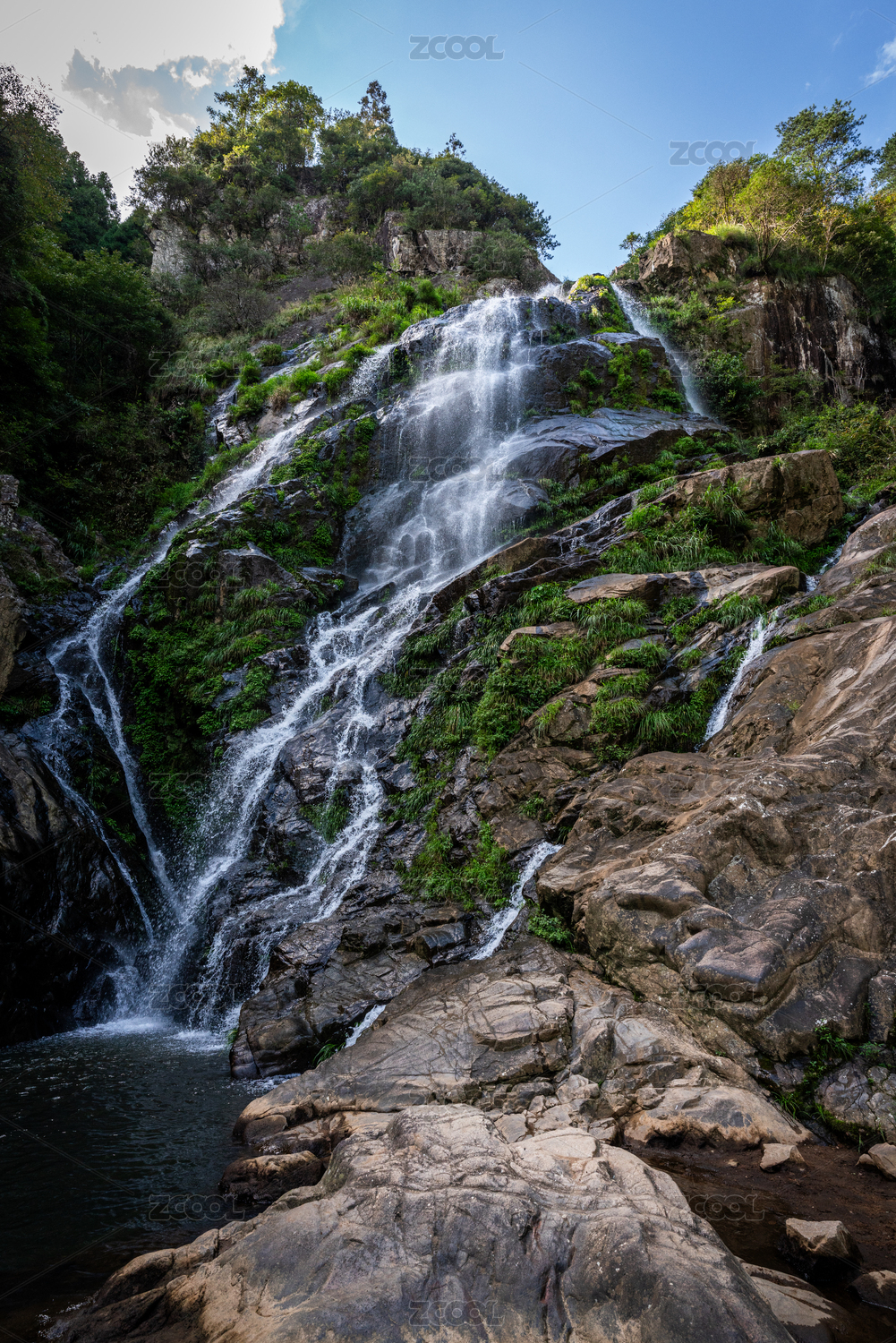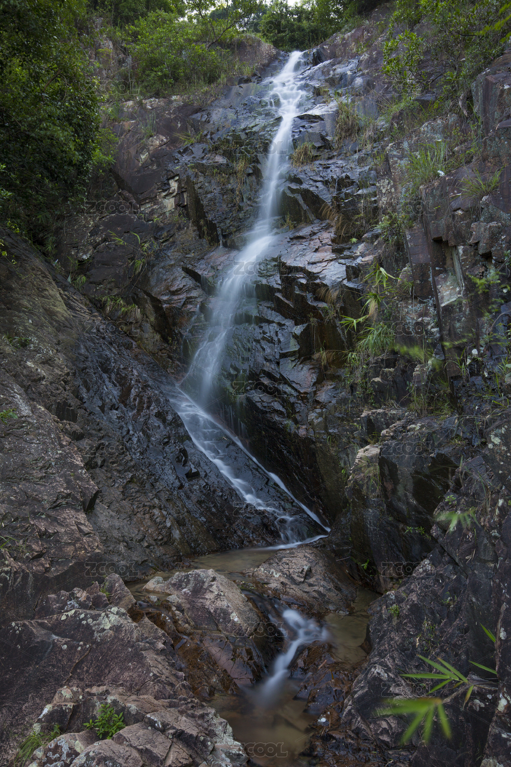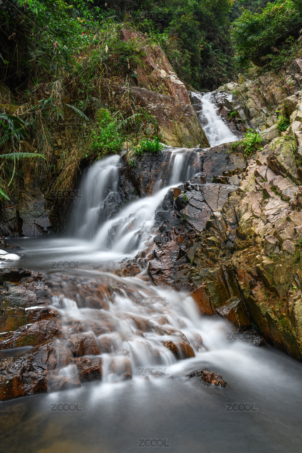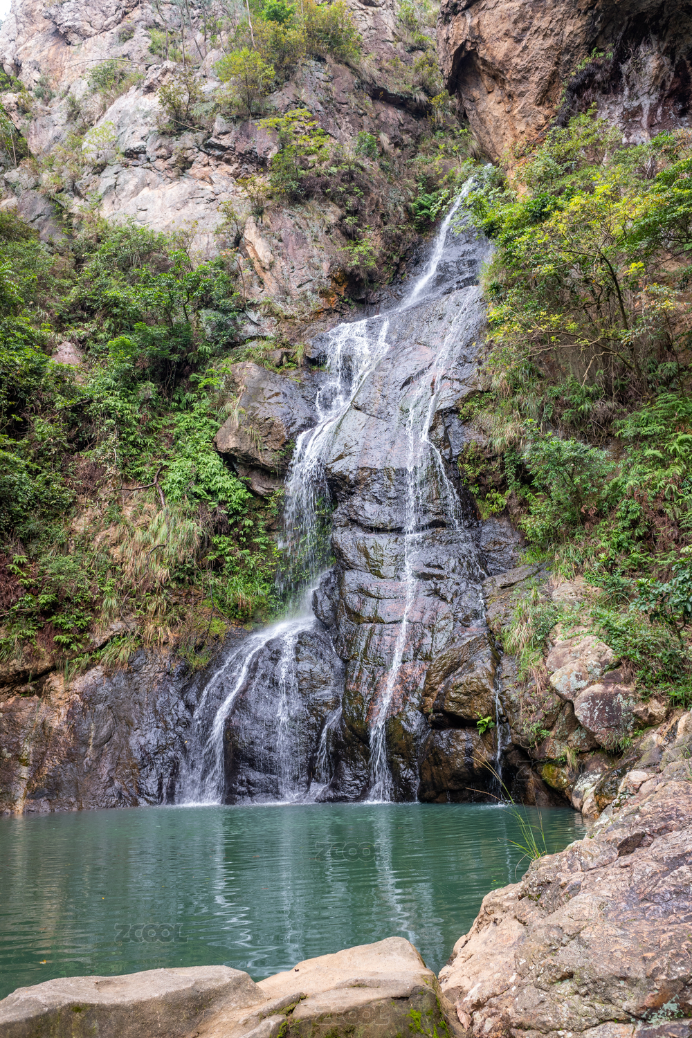山区户外岩石上流淌的小瀑布,福建龙岩