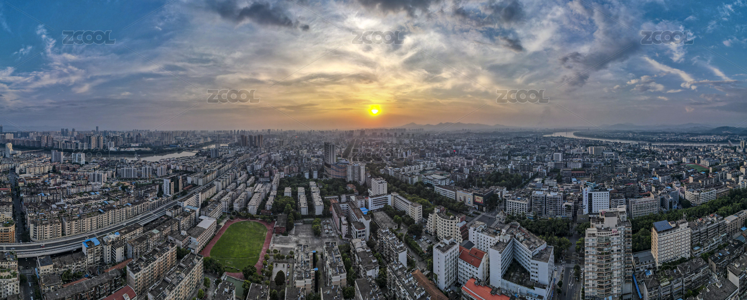 中国江西赣州城市日落全景图航拍