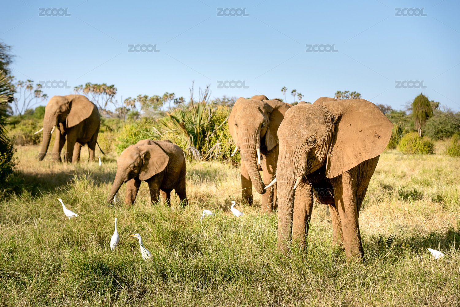 非洲象群在草原上