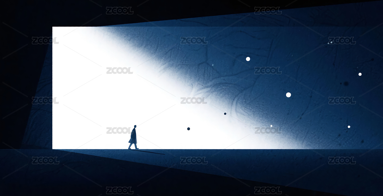 演唱会上,一束聚光灯的射灯打在舞台的地板上插画蓝色背景