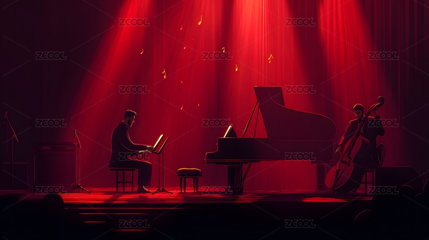插画,背景,钢琴,表演,音乐家,舞台,射灯,浪漫,演唱会,灯光
