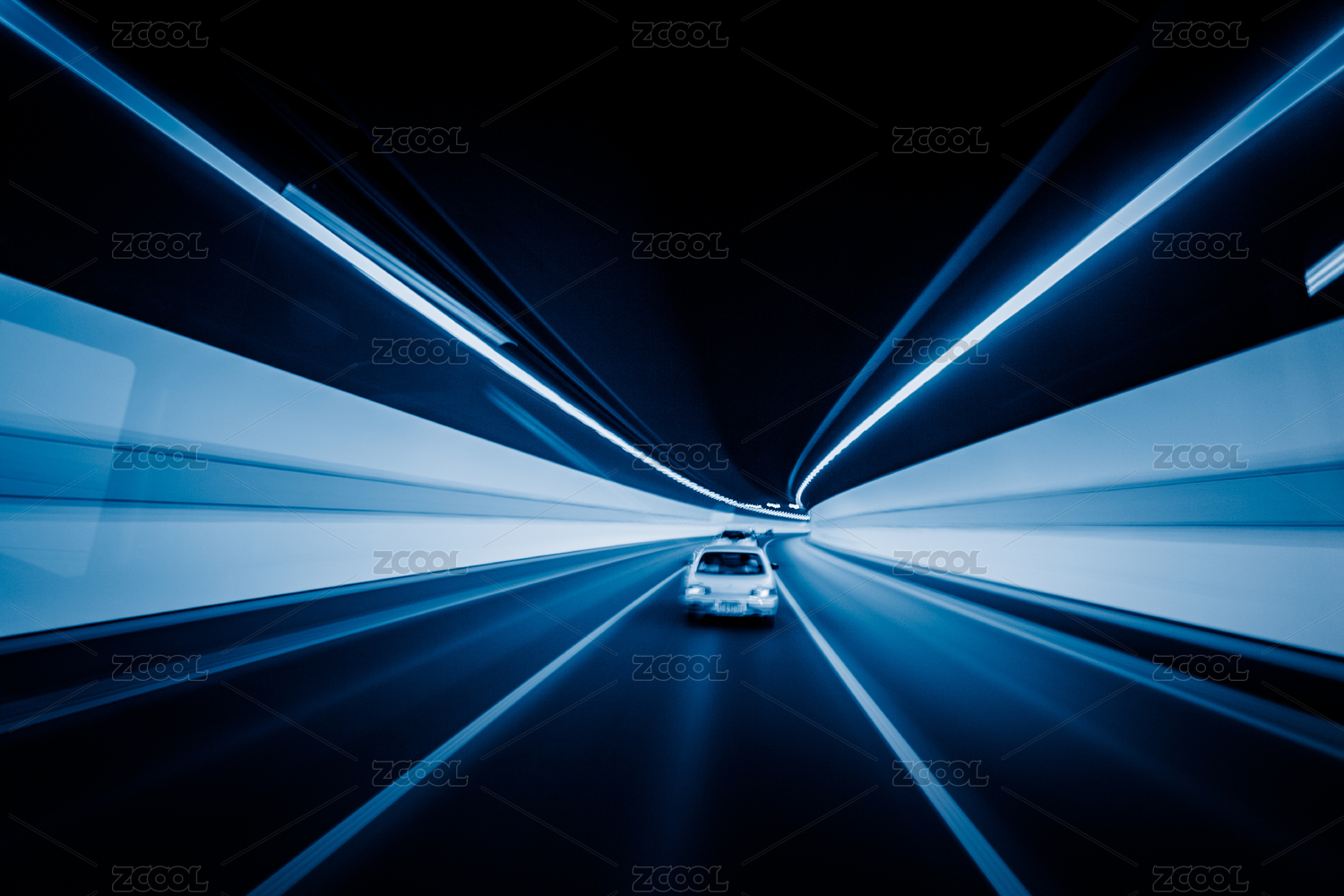 城市夜景,飞驰的汽车尾灯形成的光的轨迹