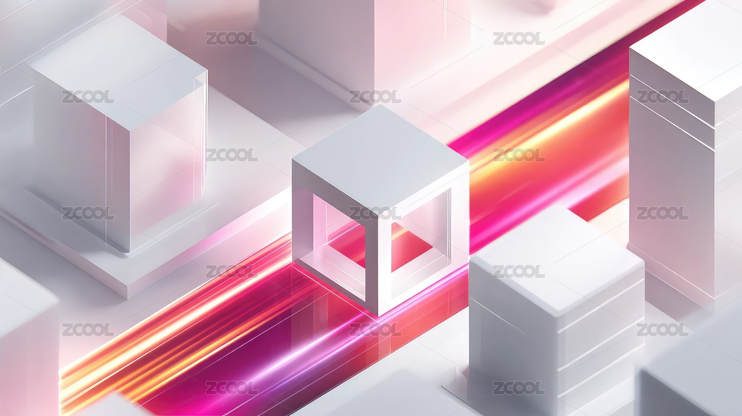 层叠排列荧光色立方体玻璃晶体3D立体插画