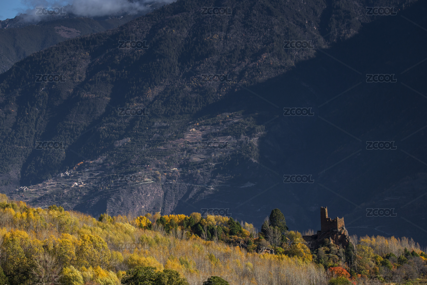 四川丹巴县甲居藏寨秋季民居碉楼风光