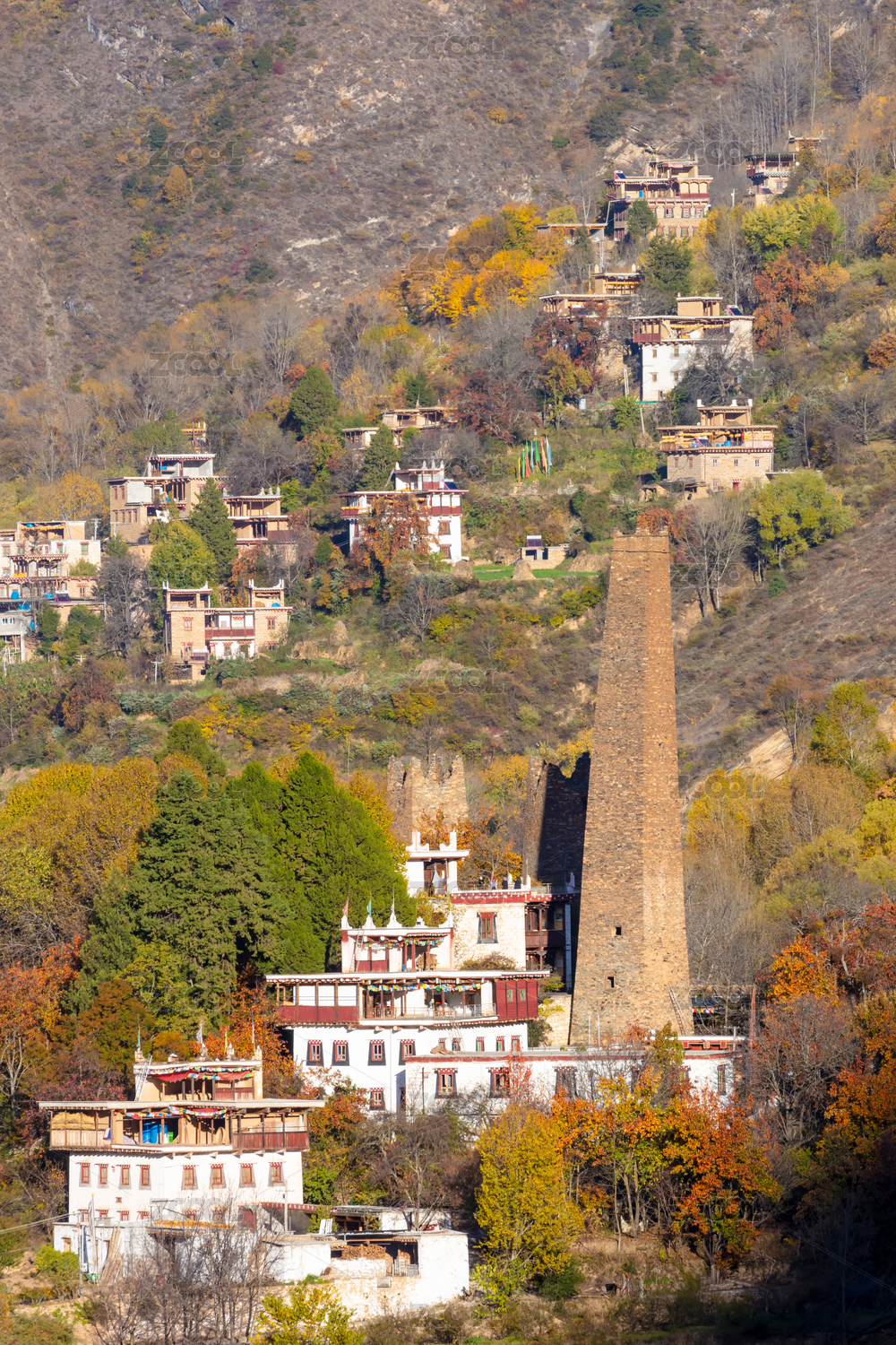 中国四川省甘孜州丹巴县的古碉和藏寨