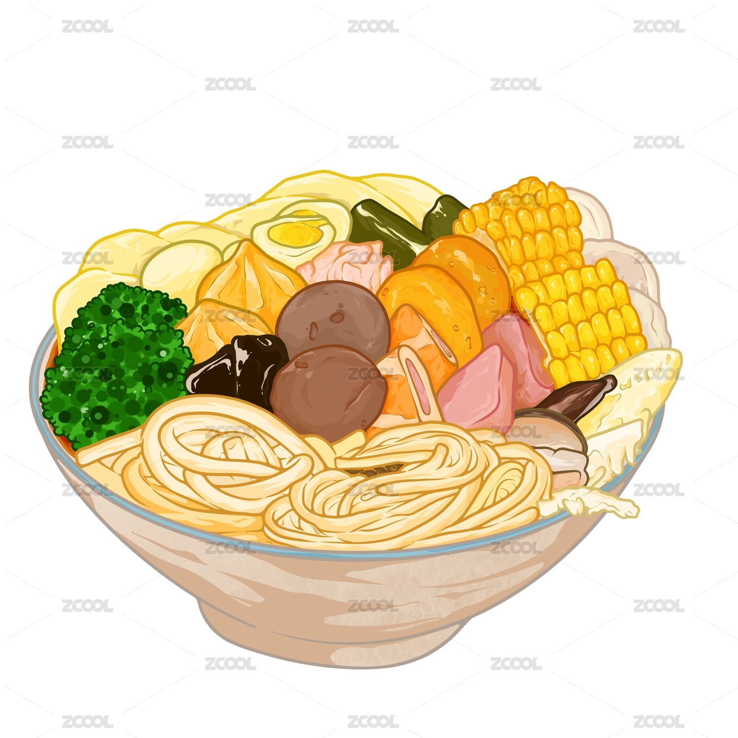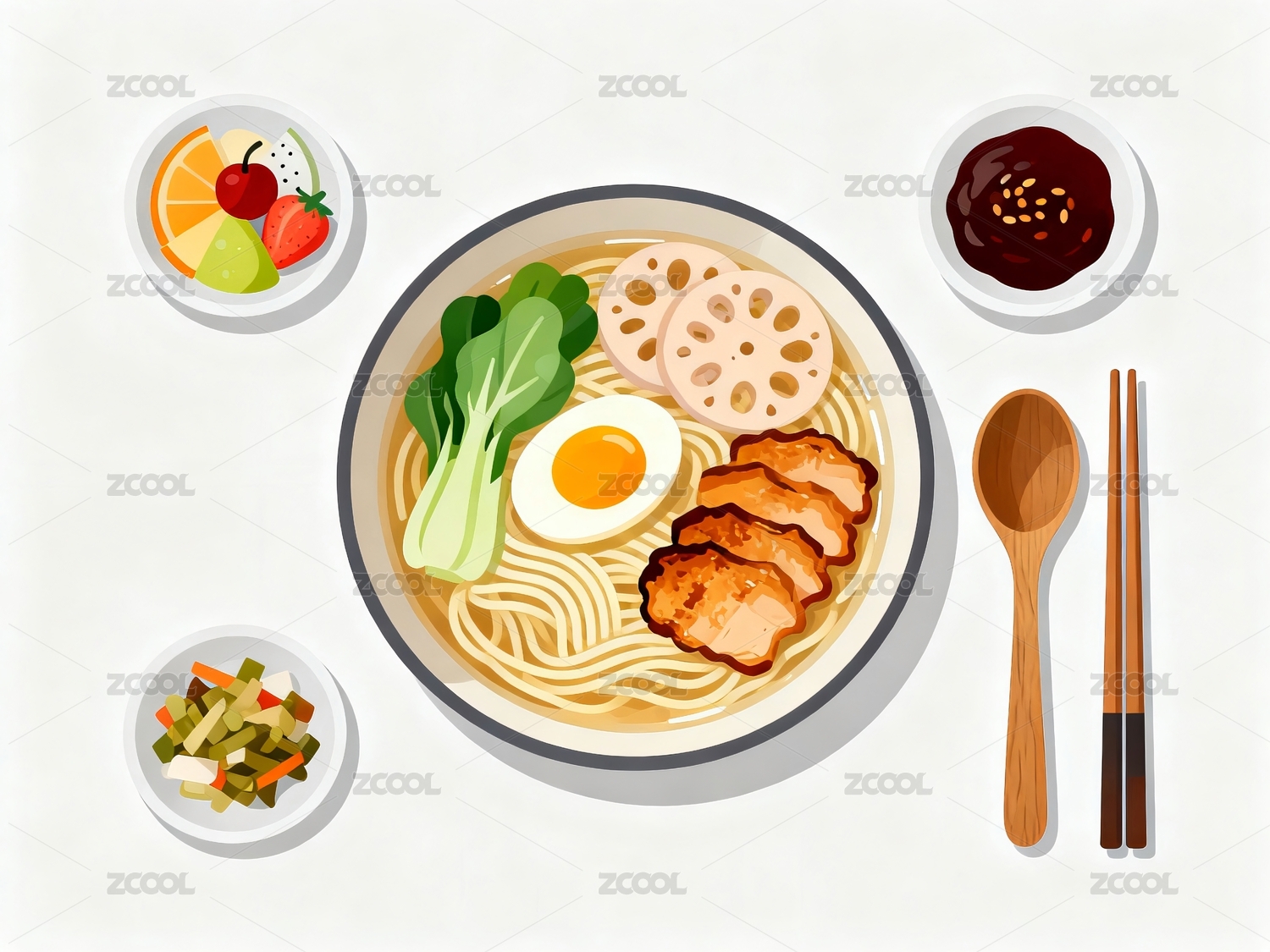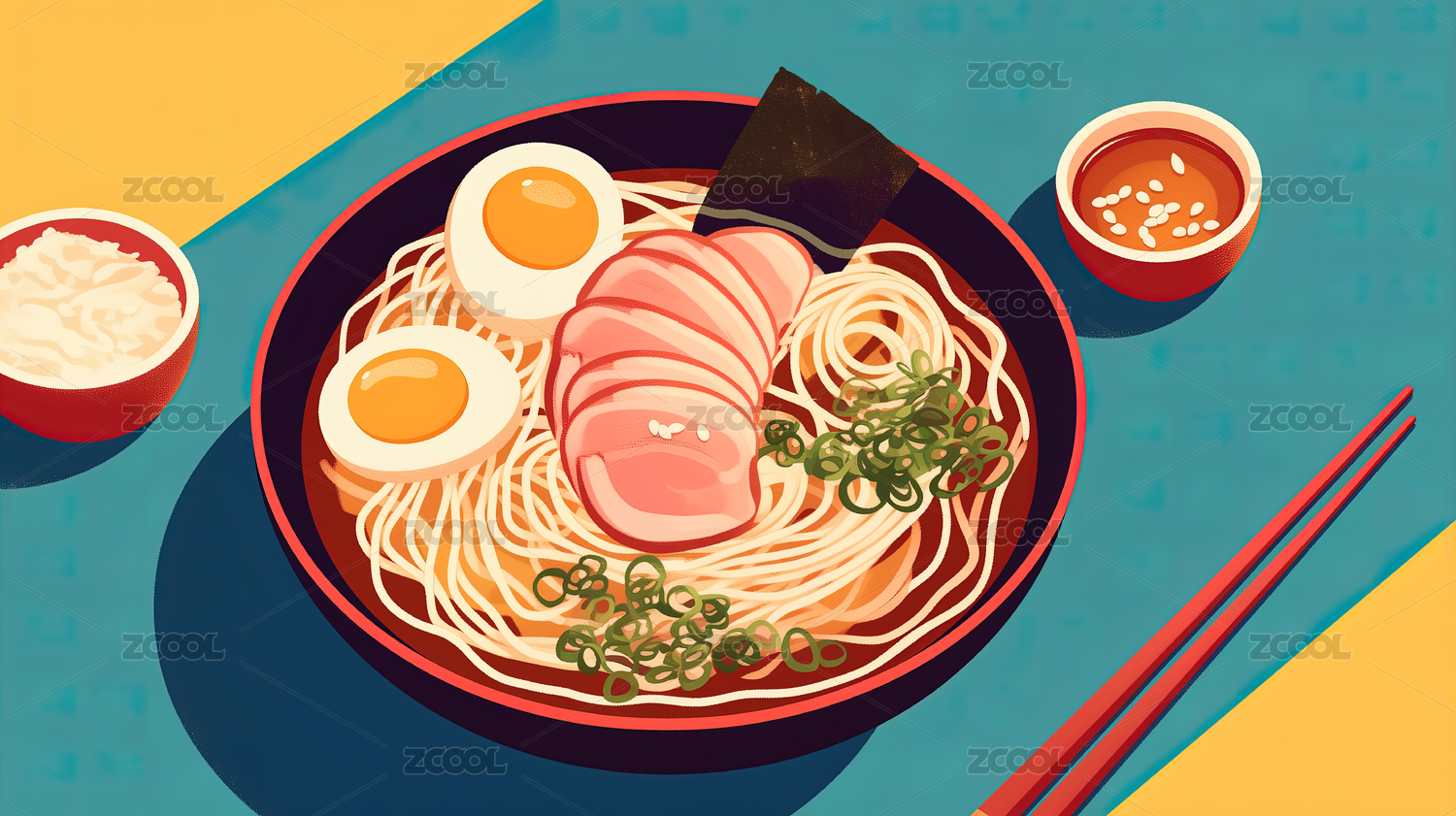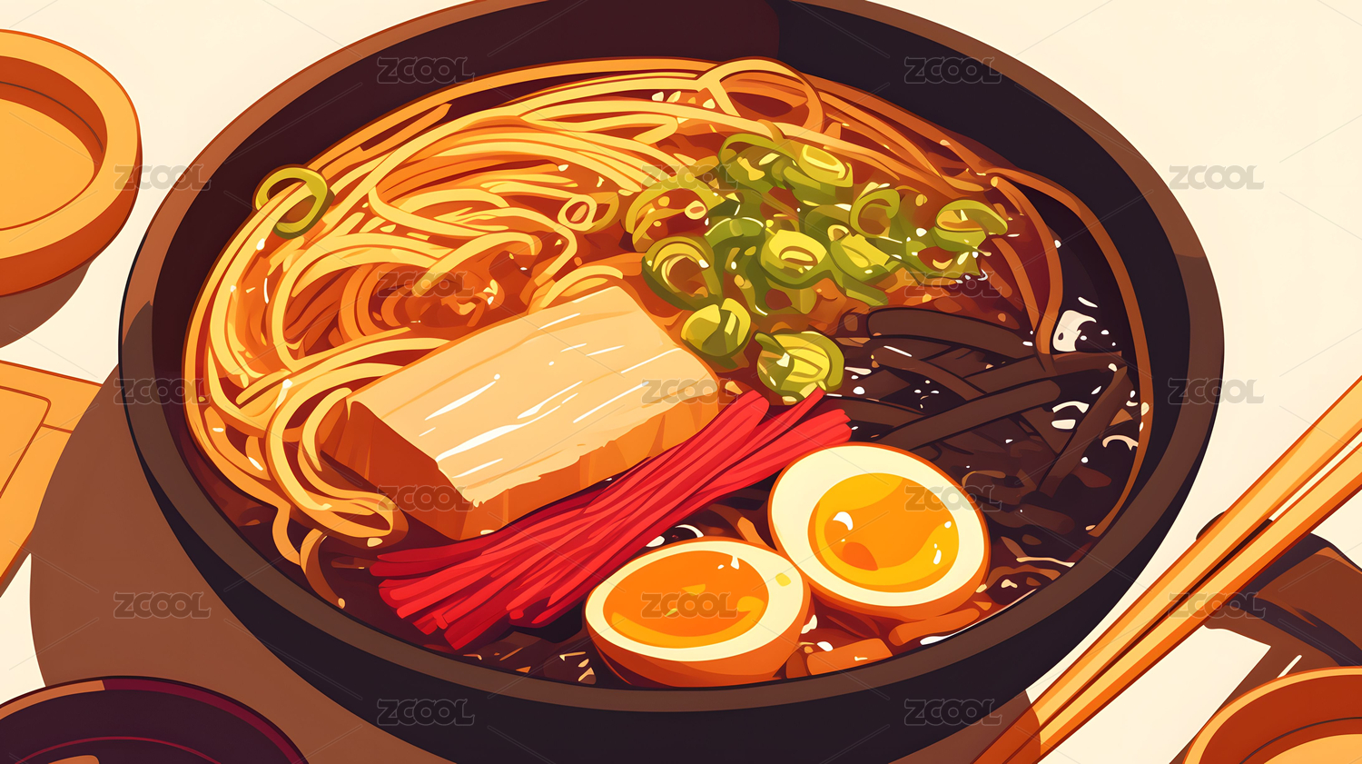 拉面,叉烧,日式拉面,插画,手绘,猫爪,日本料理,餐饮,食物,美食