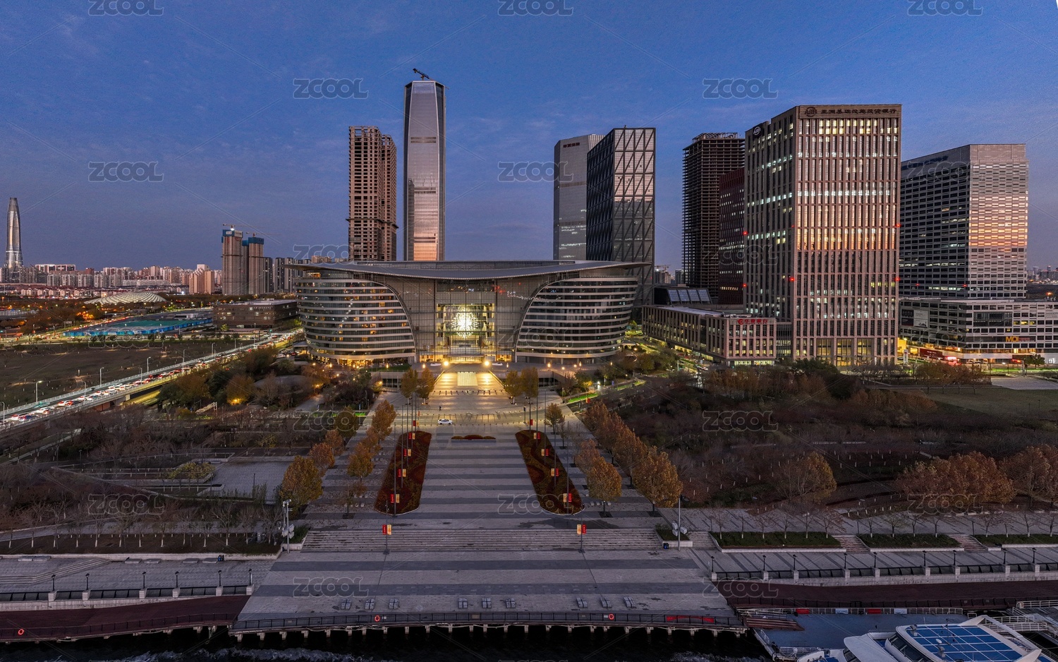 中国江苏省苏州市金鸡湖湖东CBD城市风光