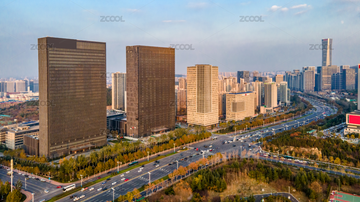 航拍郑州绿地双子塔夜景城市天际线都市地标