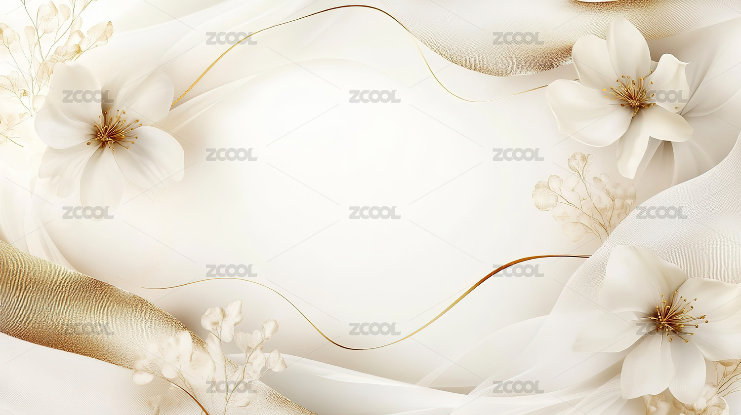 白色花朵围绕的米色背景