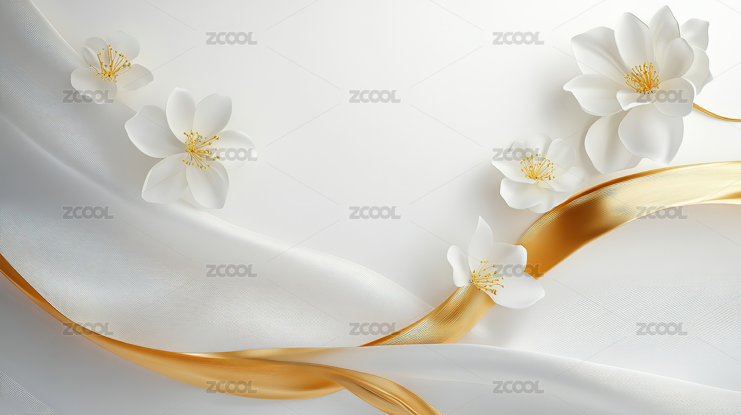 白色花卉与丝带