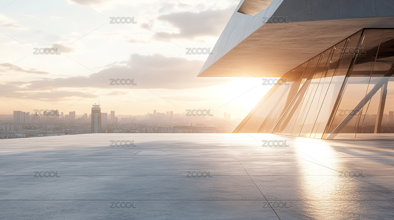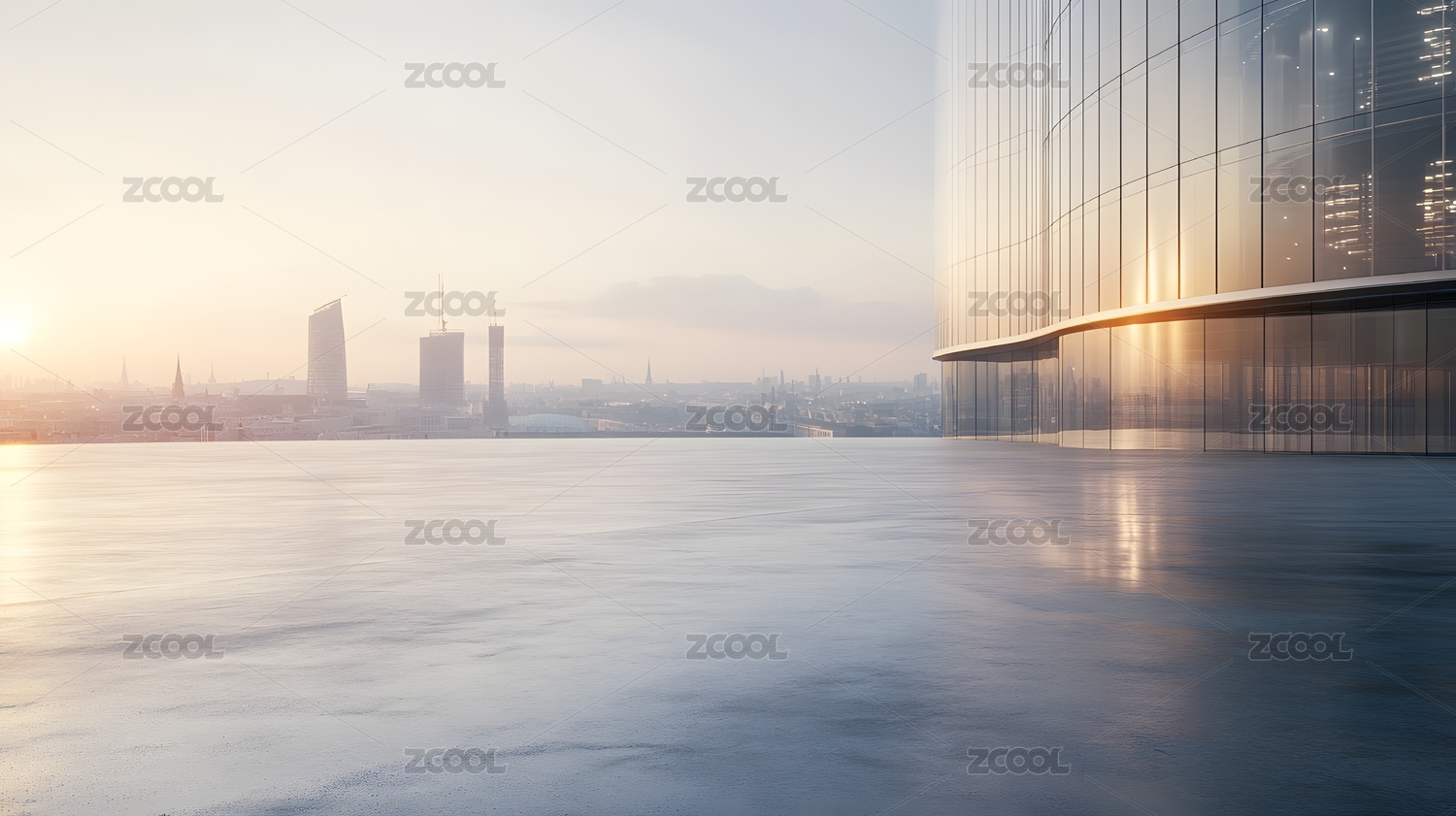 抽象插画风商业写字楼,城市天际线玻璃幕墙