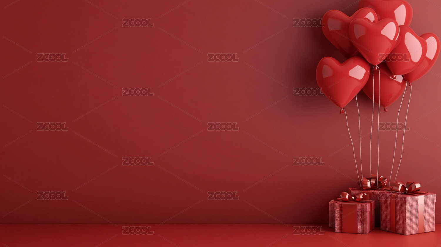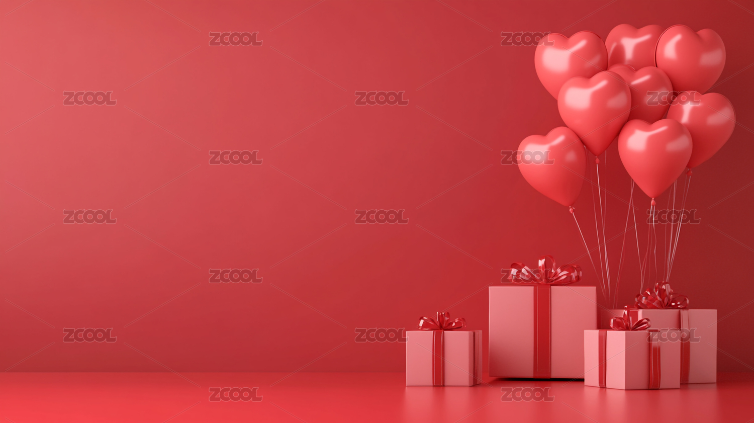 红色背景节日主题的爱心和礼物