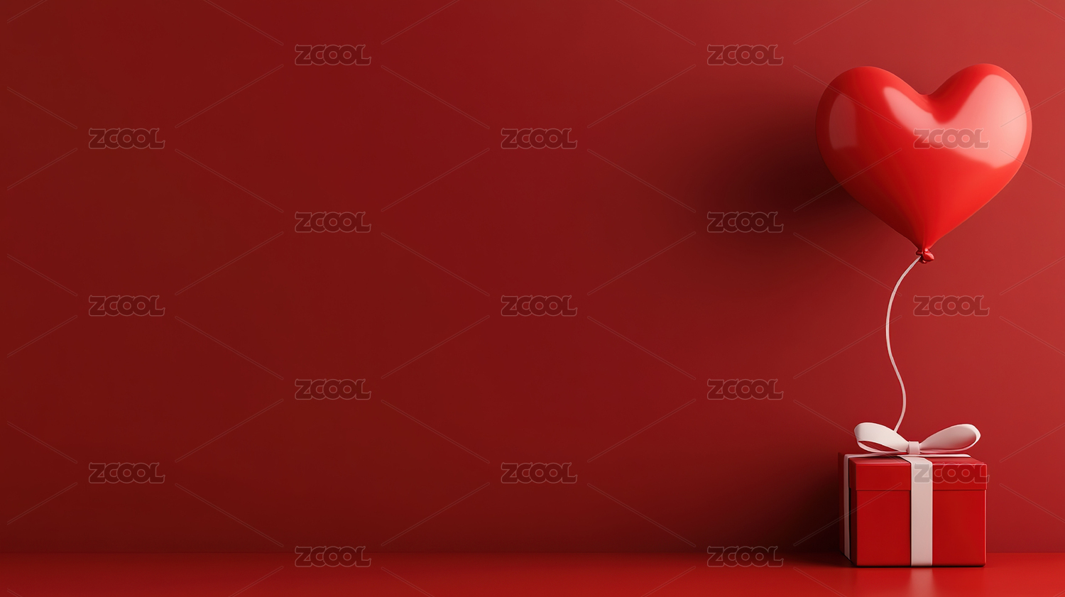 礼品盒上面有一条红丝带心形气球