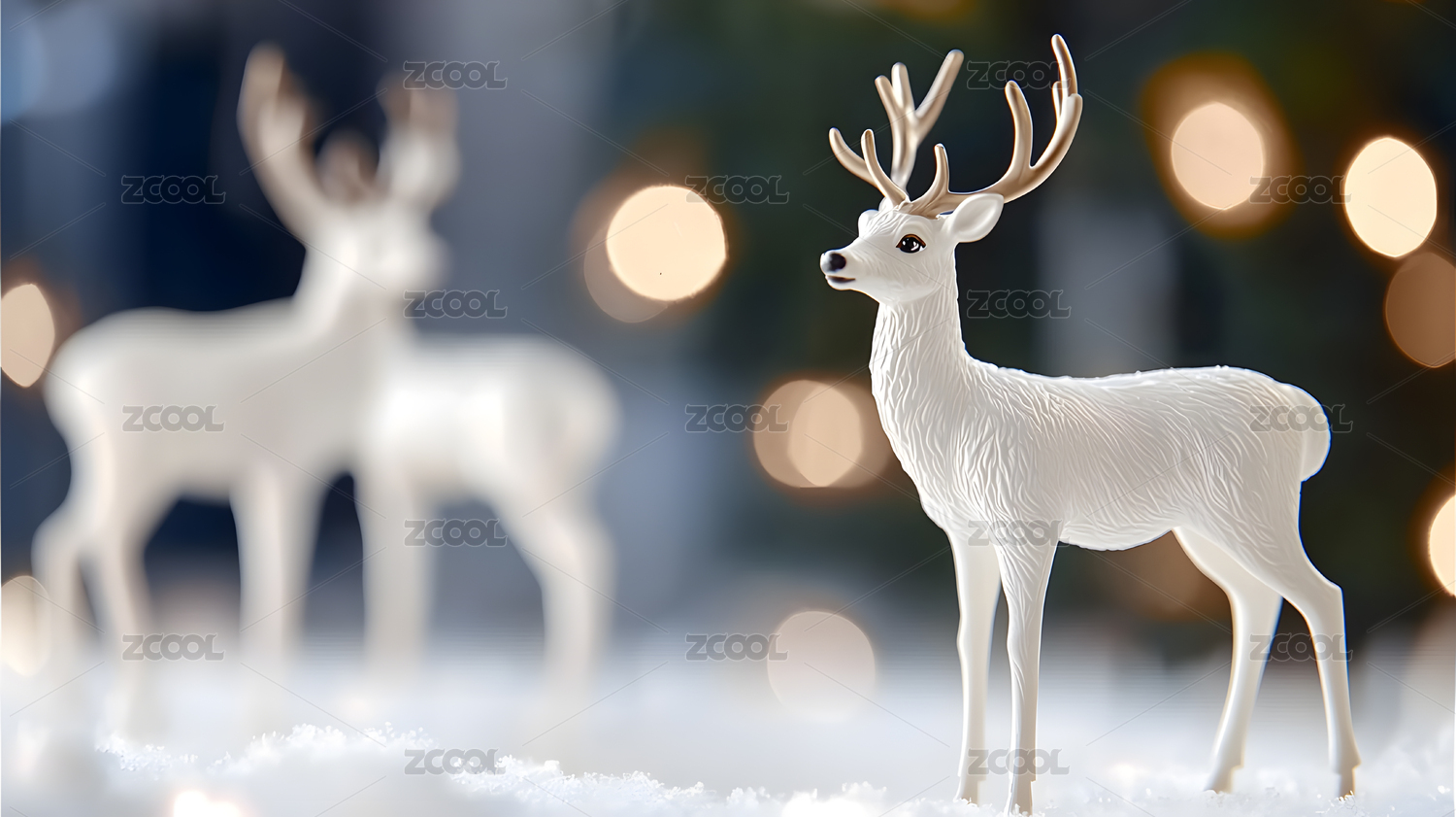 具有柔和散景背景白鹿雕像