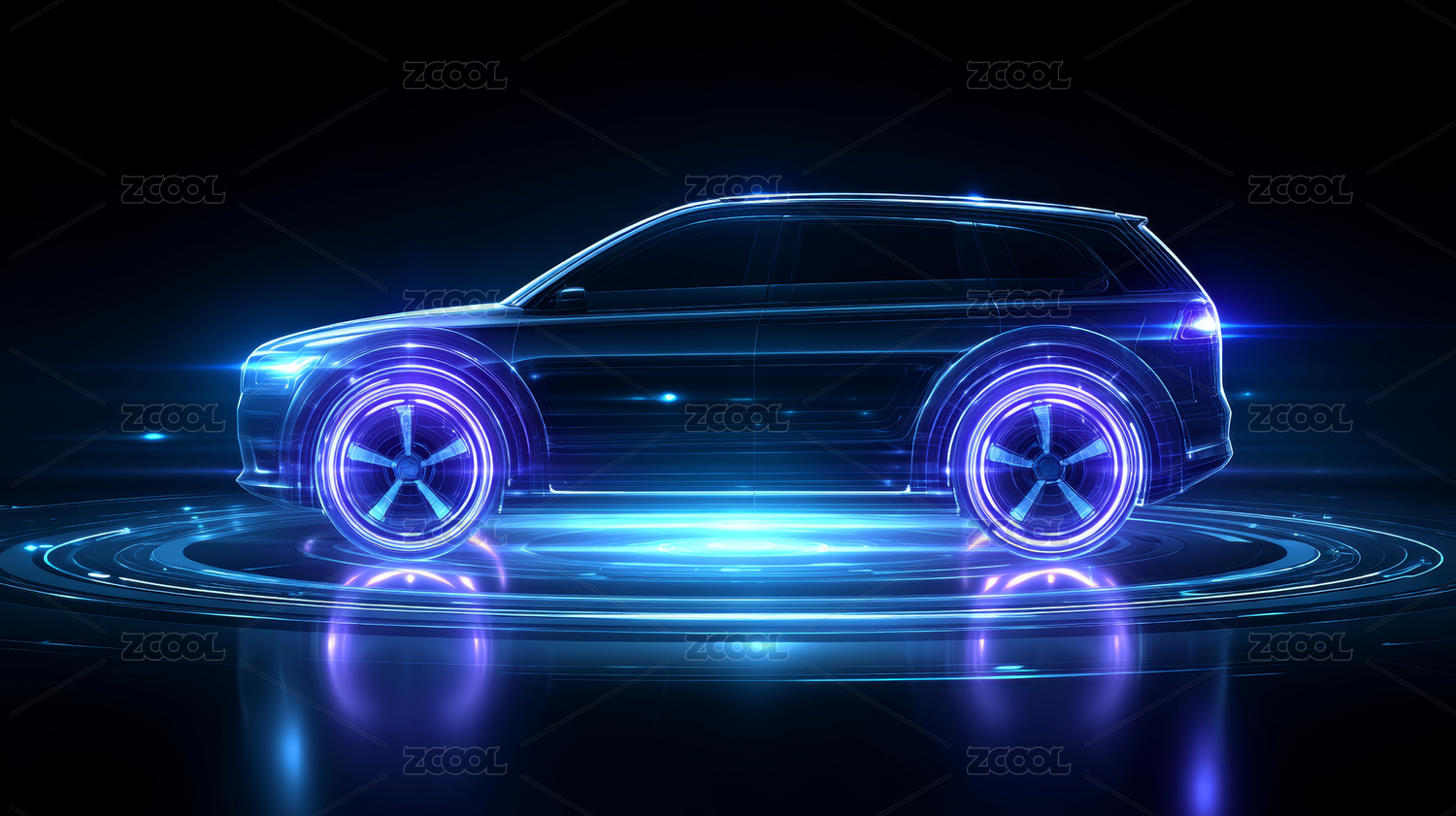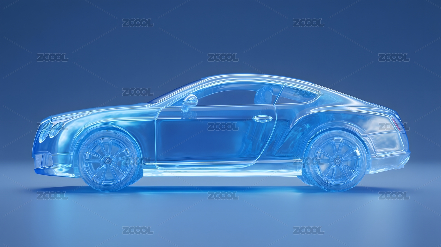 3D,插画,卡通,旅行,旅程,蓝色,透明,玻璃,赛博朋克,霓虹