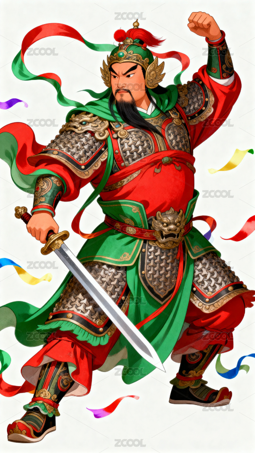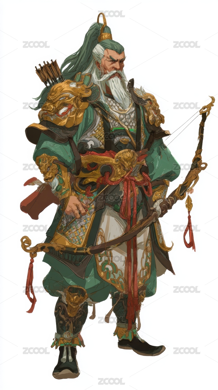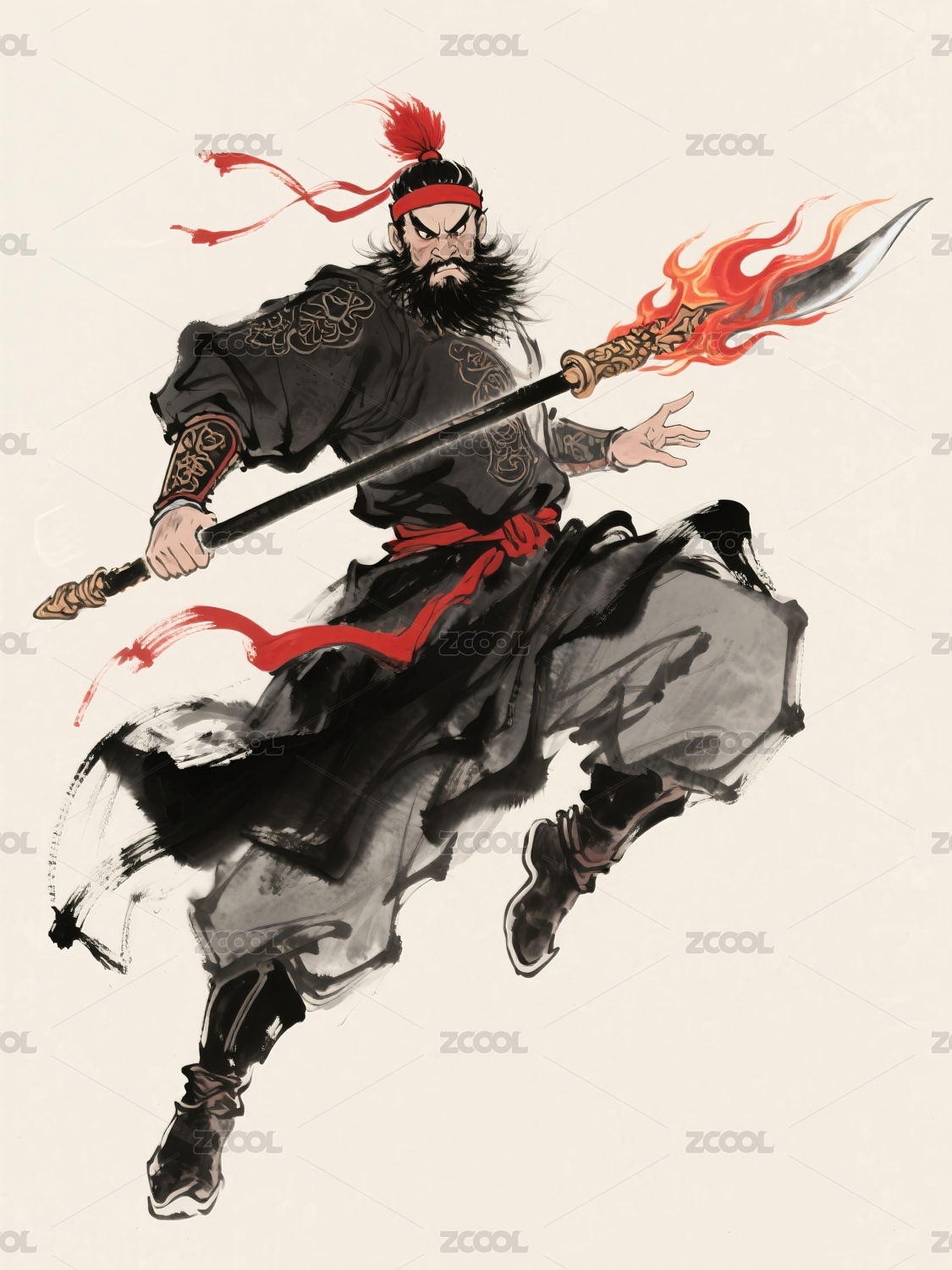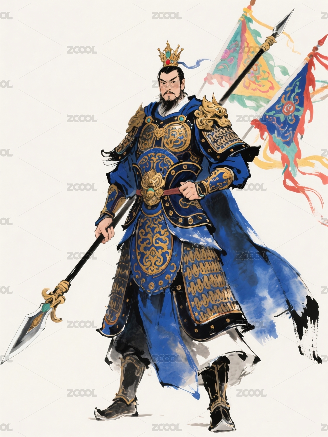 中国风,人物,插画,国画,线描,工艺画,将军,威风,站立,全身像