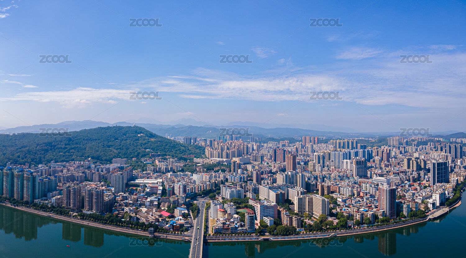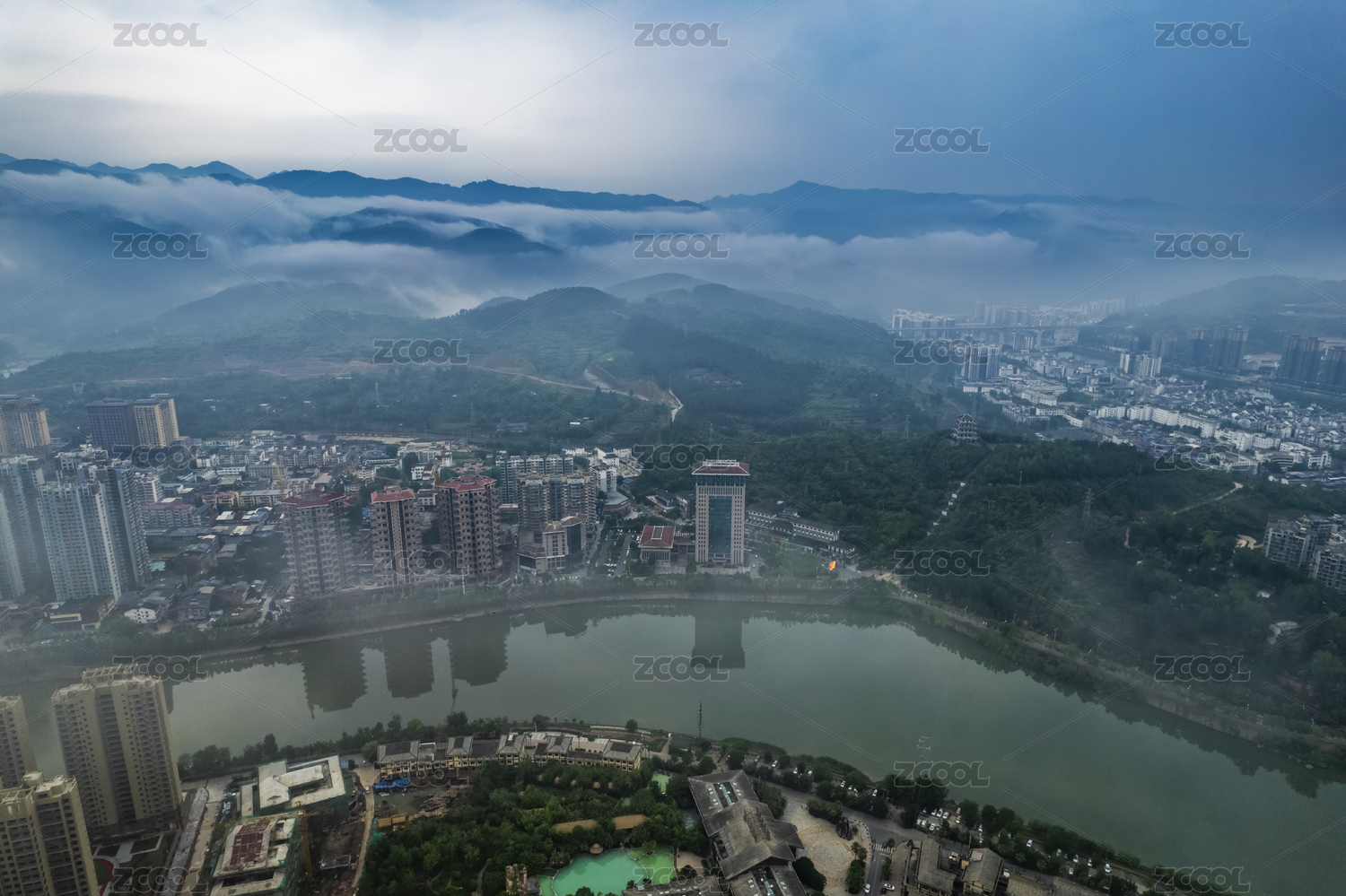 四川宜宾蜿蜒长江蓝天白云城市景观