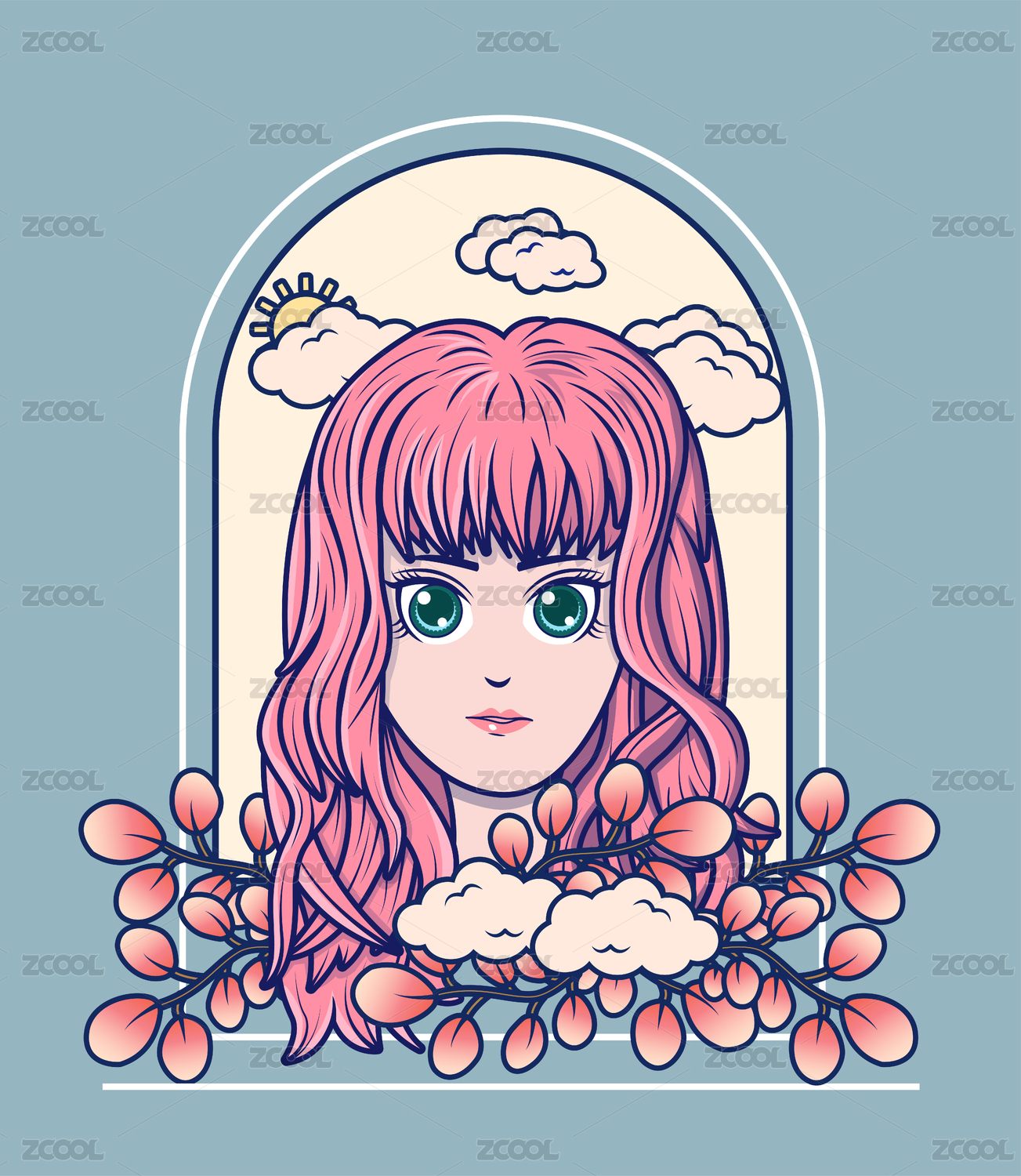 矢量卡通潮流情侣头像微笑女孩模特相框