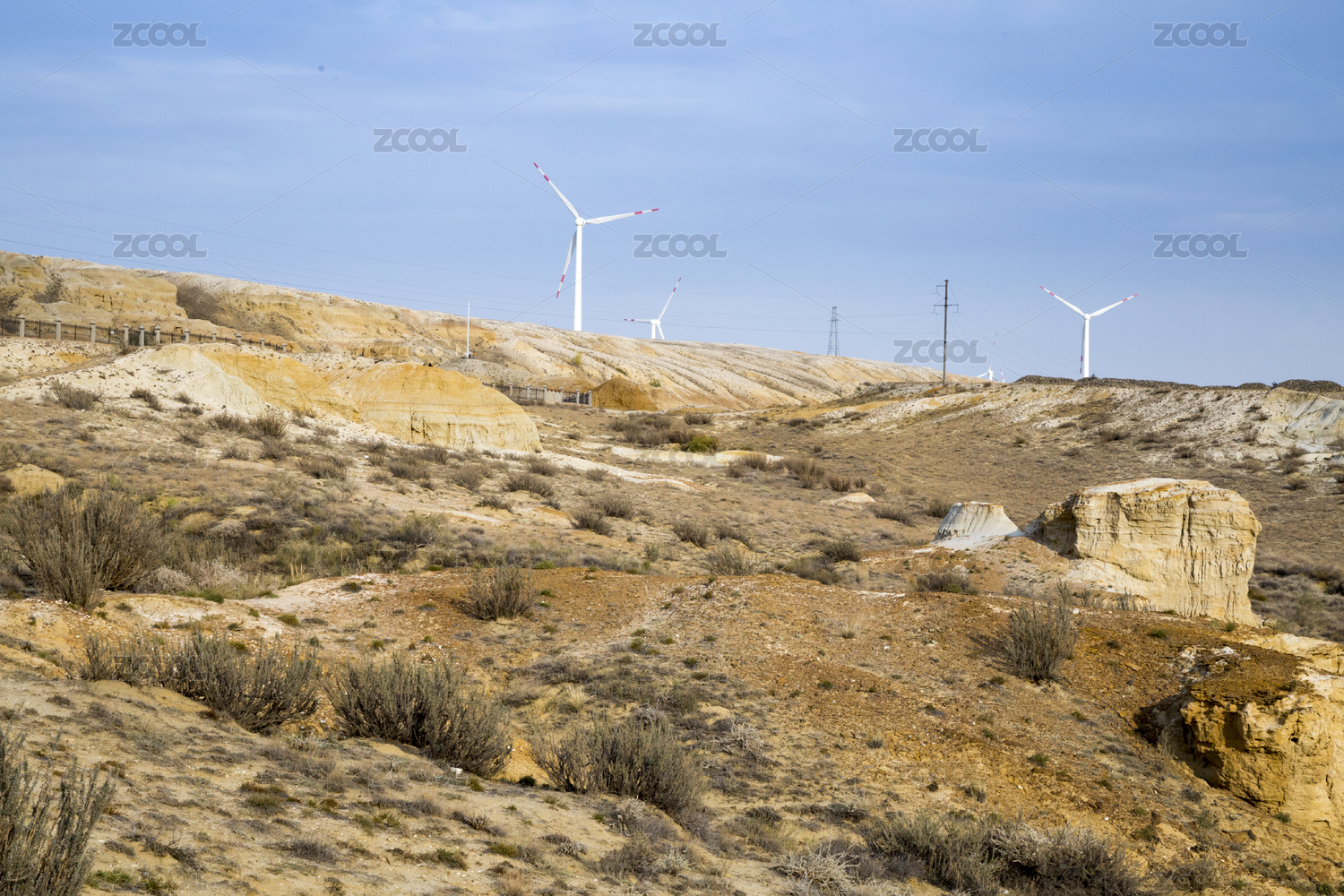 中国新疆阿勒泰布尔津县五彩滩风力发电机组